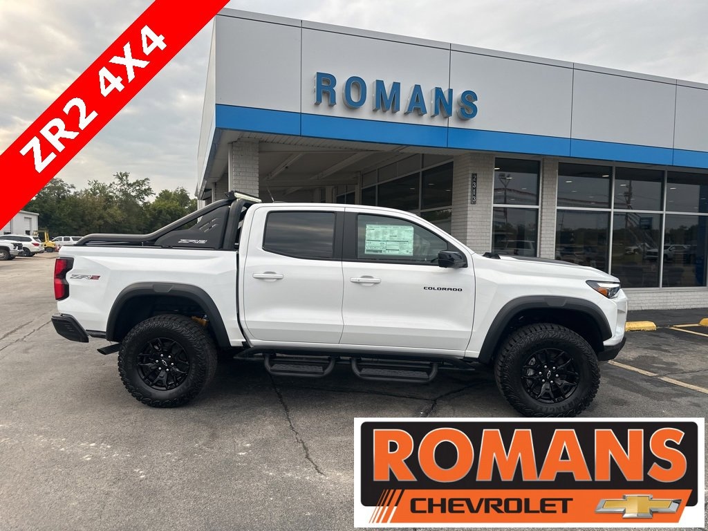 Summit White 2025 Chevrolet Colorado ZR2 4x4 4WD 8-Speed Automatic 2.7L I4 Turbocharged DOHC 16V LEV3-ULEV50 310hp 4WD, 40 Off-Road Roof Light Bar (LPO), Adaptive Cruise Control, Automatic Emergency Braking, Bed-Mounted Sport Bar w/Sail Panel (LPO), Black Nameplates (LPO), Bose Premium 7-Speaker Audio System Feature, Chevy Safety Assist, Following Distance Indicator, Forward Collision Alert, Front Pedestrian & Bicyclist Braking, HD Surround Vision, IntelliBeam Automatic High Beam On/Off, Lane Keep Assist w/Lane Departure Warning, Midnight Edition, Navigation System, Preferred Equipment Group 4ZR, Rear Pedestrian Alert, Removable Front & Rear Off-Road Assist Steps (LPO), Technology Package, Wheels: 17 x 8 High Gloss Black Painted Aluminum, ZR2 Off-Road Package, 3.42 Rear Axle Ratio, 4-Way Manual Passenger Seat Adjuster, 4-Wheel Disc Brakes, 6 Speakers, 6-Speaker Audio System Feature, 8-Way Power Driver Seat Adjuster, ABS brakes, Air Conditioning, Alloy wheels, AM/FM radio: SiriusXM, Apple CarPlay/Android Auto, Auto High-beam Headlights, Auto-dimming Rear-View mirror, Automatic temperature control, Brake assist, Compass, Delay-off headlights, Driver & Front Passenger Ventilated Seats, Driver door bin, Driver Memory Settings, Driver Seatback Map Pocket, Driver vanity mirror, Dual front impact airbags, Dual front side impact airbags, Electronic Stability Control, Emergency communication system: OnStar, Front anti-roll bar, Front Bucket Seats, Front Center Armrest, Front dual zone A/C, Front fog lights, Front License Plate Kit, Front Passenger Seatback Map Pocket, Front reading lights, Front wheel independent suspension, Heated door mirrors, Heated Driver & Front Passenger Seats, Heated front seats, Heated steering wheel, Illuminated entry, Low tire pressure warning, Memory seat, Occupant sensing airbag, Outside temperature display, Overhead airbag, Overhead console, Panic alarm, Passenger door bin, Passenger vanity mirror, Perforated Leather-Appointed Seat Trim, Power Distribution Box (LPO), Power door mirrors, Power Driver Lumbar Control Seat Adjuster, Power driver seat, Power Sliding Glass w/Manual Shade Sunroof, Power steering, Power windows, Radio data system, Radio: 11.3 Diagonal Advanced Color LCD Display, Rear reading lights, Rear seat center armrest, Rear step bumper, Rear window defroster, Remote keyless entry, Security system, SiriusXM Trial Subscription, Speed control, Speed-sensing steering, Split folding rear seat, Steering Wheel Mounted Audio Controls, Steering wheel mounted audio controls, Tachometer, Telescoping steering wheel, Tilt steering wheel, Traction control, Trip computer, Variably intermittent wipers, Ventilated front seats, Wheels: 17 x 8 Graphite & Oxide Gold Aluminum, Wireless Phone Projection, Recently Serviced., 4WD, 40 Off-Road Roof Light Bar (LPO), Adaptive Cruise Control, Automatic Emergency Braking, Bed-Mounted Sport Bar w/Sail Panel (LPO), Black Nameplates (LPO), Bose Premium 7-Speaker Audio System Feature, Chevy Safety Assist, Following Distance Indicator, Forward Collision Alert, Front Pedestrian & Bicyclist Braking, HD Surround Vision, IntelliBeam Automatic High Beam On/Off, Lane Keep Assist w/Lane Departure Warning, Midnight Edition, Navigation System, Preferred Equipment Group 4ZR, Rear Pedestrian Alert, Removable Front & Rear Off-Road Assist Steps (LPO), Technology Package, Wheels: 17 x 8 High Gloss Black Painted Aluminum, ZR2 Off-Road Package. Price includes: $500 - Chevrolet Consumer Cash Program. Exp. 12/01/2025 $500 - GM First Responder Cash Allowance Program. Exp. 01/02/2026 $500 - GM Rewards Card Sales Sign Up and Spend Offer. Exp. 01/02/2026