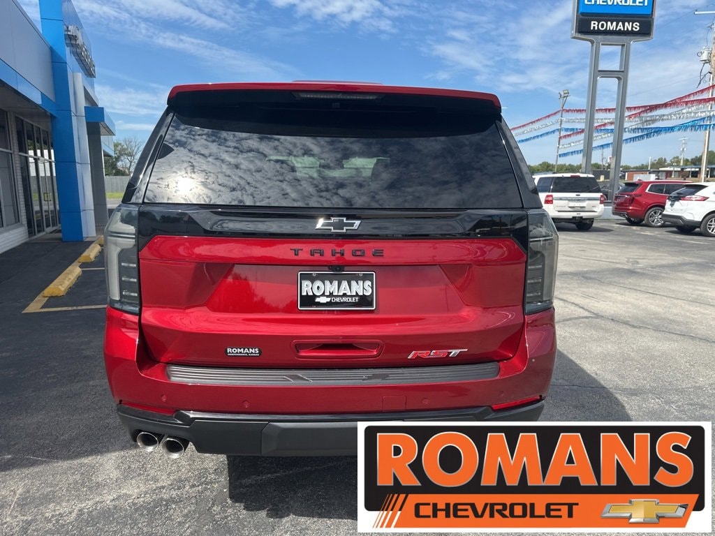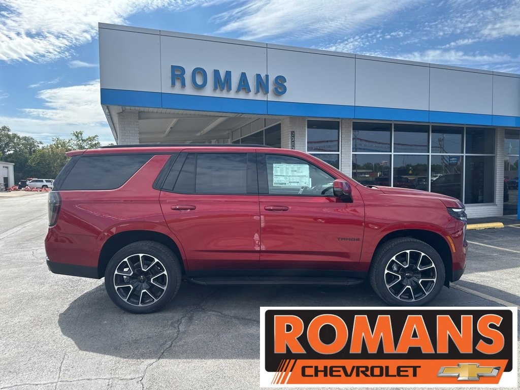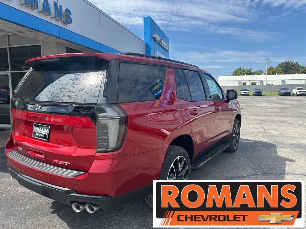 Radiant Red Tintcoat 2025 Chevrolet Tahoe RST 4x4 4WD 10-Speed Automatic with Overdrive EcoTec3 5.3L V8 4WD, Jet Black/Victory Red Leather, 1st & 2nd Row Color-Keyed Carpeted Floor Mats, 2nd Row Pwr Release 60/40 Split-Folding Bench Seat, 3-Spoke Wrapped Steering Wheel, 3rd Row 60/40 Power-Folding Split-Bench Seat, 3rd Row Manual 60/40 Split-Folding Bench Seats, 6 Speakers, Auto-Dimming Inside Rear-View Mirror, Bose 10-Speaker Centerpoint Surround Audio Sys Ft, Bright Front & Rear Door Sill Plates, Color-Keyed Carpeting Floor Covering, Comfort Package, Dual Exhaust System, Floor Console w/Storage Area, Front LED Fog Lamps, Front Pedestrian & Bicyclist Braking, Frontal Driver & Outboard Passenger Airbags, Heated 2nd Row Outboard Seats, Heated Steering Wheel, LED Headlamps w/LED Daytime Running Lamps, LED Tail Lamps, License Plate Front Mounting Package, Memory Settings, Memory Settings for Driver, Navigation system: Google built-in compatibility (select service plan required, terms and limitations apply), Outside Heated Power-Adjustable Mirrors, Preferred Equipment Group 1SP, Rear Power Liftgate, Remote Start, RST Exterior Features, SiriusXM w/360L Trial Subscription, Universal Home Remote, USB Ports, Wireless Phone Charging, 2-Way Power Driver Lumbar Seat Adjuster, 2-Way Power Front Passenger Lumbar Seat Adjuster, 3.23 Rear Axle Ratio, 3rd row seats: split-bench, 4-Wheel Disc Brakes, 6-Speaker Audio System Feature, 8-Way Power Driver Seat Adjuster, 8-Way Power Front Passenger Seat Adjuster, ABS brakes, Air Conditioning, Alloy wheels, AM/FM radio: SiriusXM with 360L, Apple CarPlay/Android Auto, Auto High-beam Headlights, Auto-dimming Rear-View mirror, Automatic temperature control, Brake assist, Bumpers: body-color, Compass, Delay-off headlights, Driver door bin, Driver vanity mirror, Dual front impact airbags, Dual front side impact airbags, Electronic Stability Control, Emergency communication system: OnStar and Chevrolet connected services capable, Exterior Parking Camera Rear, Four wheel independent suspension, Front anti-roll bar, Front Bucket Seats, Front Center Armrest, Front dual zone A/C, Front fog lights, Front reading lights, Fully automatic headlights, Garage door transmitter, Heated door mirrors, Heated Driver & Front Passenger Seats, Heated front seats, Illuminated entry, Low tire pressure warning, Memory seat, Occupant sensing airbag, Outside temperature display, Overhead airbag, Overhead console, Panic alarm, Passenger door bin, Passenger vanity mirror, Perforated Leather Seat Trim, Power door mirrors, Power driver seat, Power Liftgate, Power passenger seat, Power steering, Power windows, Premium audio system: Chevrolet Infotainment 3 Premium, Premium Smooth Ride Suspension, Radio data system, Radio: 17.7 Diagonal Advanced Color LCD Display, Rain sensing wipers, Rear air conditioning, Rear anti-roll bar, Rear reading lights, Rear seat center armrest, Rear window defroster, Rear window wiper, Remote keyless entry, Security system, Set of 4 Wheel Locks (LPO), Speed control, Speed-sensing steering, Split folding rear seat, Spoiler, Steering wheel mounted audio controls, Tachometer, Telescoping steering wheel, Tilt steering wheel, Traction control, Trip computer, Variably intermittent wipers, Voltmeter, Wheels: 22 x 9 Bright Machined, 4WD, Jet Black/Victory Red Leather, 1st & 2nd Row Color-Keyed Carpeted Floor Mats, 2nd Row Pwr Release 60/40 Split-Folding Bench Seat, 3-Spoke Wrapped Steering Wheel, 3rd Row 60/40 Power-Folding Split-Bench Seat, 3rd Row Manual 60/40 Split-Folding Bench Seats, 6 Speakers, Auto-Dimming Inside Rear-View Mirror, Bose 10-Speaker Centerpoint Surround Audio Sys Ft, Bright Front & Rear Door Sill Plates, Color-Keyed Carpeting Floor Covering, Comfort Package, Dual Exhaust System, Floor Console w/Storage Area, Front LED Fog Lamps, Front Ped Price includes: $500 - GM First Responder Cash Allowance Program. Exp. 01/02/2026 $500 - GM Rewards Card Sa