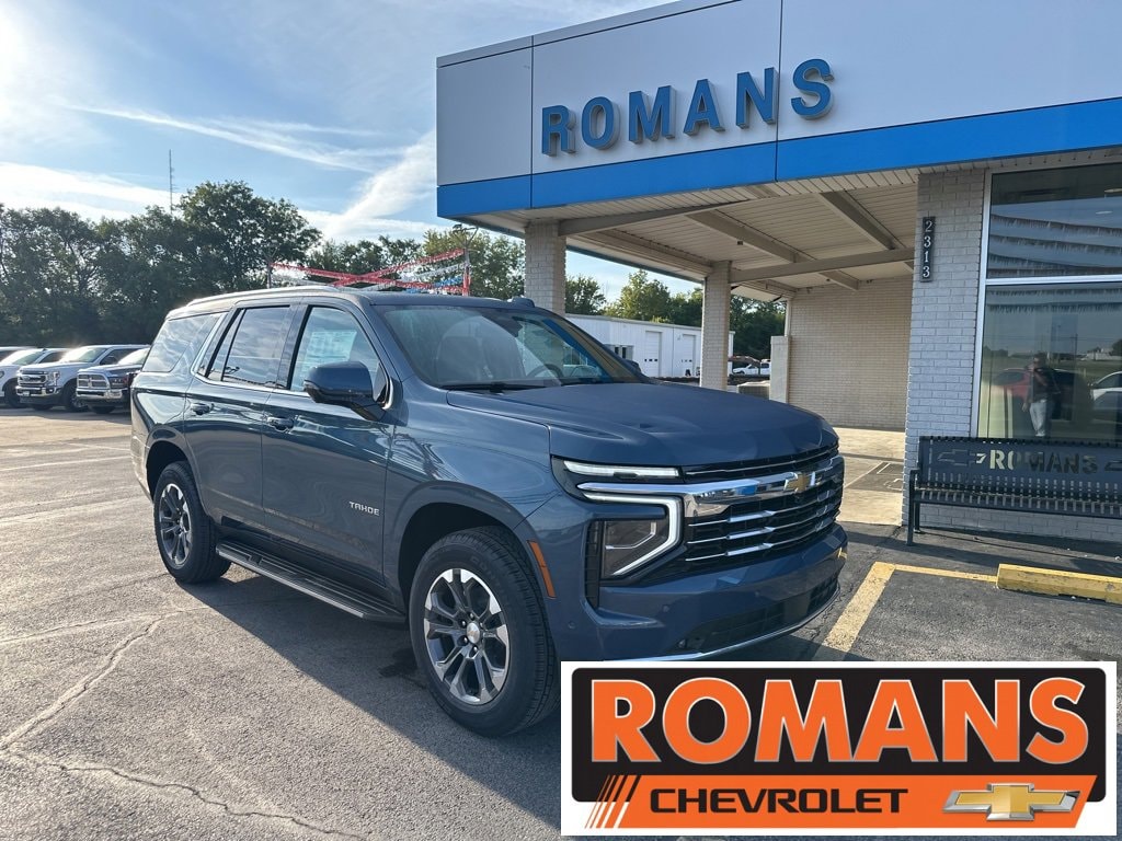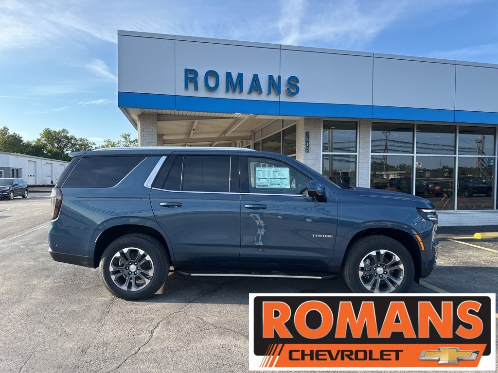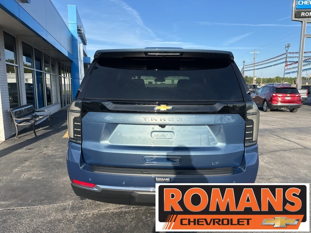 Lakeshore Blue Metallic 2025 Chevrolet Tahoe LT RWD 10-Speed Automatic with Overdrive EcoTec3 5.3L V8 Gideon/Very Dark Atmosphere Leather, 1st & 2nd Row Color-Keyed Carpeted Floor Mats, 2nd Row Pwr Release 60/40 Split-Folding Bench Seat, 3-Spoke Wrapped Steering Wheel, 3rd Row 60/40 Power-Folding Split-Bench Seat, 3rd Row Manual 60/40 Split-Folding Bench Seats, Auto-Dimming Inside Rear-View Mirror, Bose 10-Speaker Centerpoint Surround Audio Sys Ft, Color-Keyed Carpeting Floor Covering, Comfort Package, Floor Console w/Storage Area, Front LED Fog Lamps, Front Pedestrian & Bicyclist Braking, Frontal Driver & Outboard Passenger Airbags, Heated 2nd Row Outboard Seats, Heated Steering Wheel, LED Headlamps w/LED Daytime Running Lamps, LED Tail Lamps, License Plate Front Mounting Package, Luxury Package, Memory Settings, Memory Settings for Driver, Outside Heated Power-Adjustable Mirrors, Preferred Equipment Group 1LT, Rear Power Liftgate, Remote Start, SiriusXM w/360L Trial Subscription, Universal Home Remote, USB Ports, Wireless Phone Charging, 2-Way Power Driver Lumbar Seat Adjuster, 2-Way Power Front Passenger Lumbar Seat Adjuster, 3.23 Rear Axle Ratio, 3rd row seats: split-bench, 4-Wheel Disc Brakes, 6 Speakers, 6-Speaker Audio System Feature, 8-Way Power Driver Seat Adjuster, 8-Way Power Front Passenger Seat Adjuster, ABS brakes, Air Conditioning, Alloy wheels, AM/FM radio: SiriusXM with 360L, Apple CarPlay/Android Auto, Auto High-beam Headlights, Automatic temperature control, Brake assist, Bumpers: body-color, Compass, Delay-off headlights, Driver door bin, Driver vanity mirror, Dual front impact airbags, Dual front side impact airbags, Dual-Pane Power Panoramic Sunroof, Electronic Stability Control, Emergency communication system: OnStar and Chevrolet connected services capable, Exterior Parking Camera Rear, Four wheel independent suspension, Front anti-roll bar, Front Bucket Seats, Front Center Armrest, Front dual zone A/C, Front reading lights, Fully automatic headlights, Heated door mirrors, Heated Driver & Front Passenger Seats, Heated front seats, Illuminated entry, Leather-Appointed Seat Trim, Low tire pressure warning, Memory seat, Navigation system: Google built-in compatibility (select service plan required, terms and limitations apply), Occupant sensing airbag, Outside temperature display, Overhead airbag, Overhead console, Panic alarm, Passenger door bin, Passenger vanity mirror, Power door mirrors, Power driver seat, Power Liftgate, Power passenger seat, Power Release 2nd Row Bucket Seats, Power steering, Power windows, Premium audio system: Chevrolet Infotainment 3 Premium, Premium Smooth Ride Suspension, Radio data system, Radio: 17.7 Diagonal Advanced Color LCD Display, Rain sensing wipers, Rear air conditioning, Rear anti-roll bar, Rear reading lights, Rear seat center armrest, Rear window defroster, Rear window wiper, Remote keyless entry, Security system, Speed control, Speed-sensing steering, Split folding rear seat, Spoiler, Steering wheel mounted audio controls, Tachometer, Telescoping steering wheel, Tilt steering wheel, Traction control, Trip computer, Variably intermittent wipers, Voltmeter, Wheels: 18 x 8.5 Bright Silver Painted Aluminum, Wheels: 20 x 9 Machined Aluminum, Recently Serviced., Gideon/Very Dark Atmosphere Leather, 1st & 2nd Row Color-Keyed Carpeted Floor Mats, 2nd Row Pwr Release 60/40 Split-Folding Bench Seat, 3-Spoke Wrapped Steering Wheel, 3rd Row 60/40 Power-Folding Split-Bench Seat, 3rd Row Manual 60/40 Split-Folding Bench Seats, Auto-Dimming Inside Rear-View Mirror, Bose 10-Speaker Centerpoint Surround Audio Sys Ft, Color-Keyed Carpeting Floor Covering, Comfort Package, Floor Console w/Storage Area, Front LED Fog Lamps, Front Pedestrian & Bicyclist Braking, Frontal Driver & Outboard Passenger Airbags, Heated 2nd Row Price includes: $500 - GM Healthcare Professional Cash Allowance Program. Exp. 11/02/2025 $500 - GM Rewards Card Sale