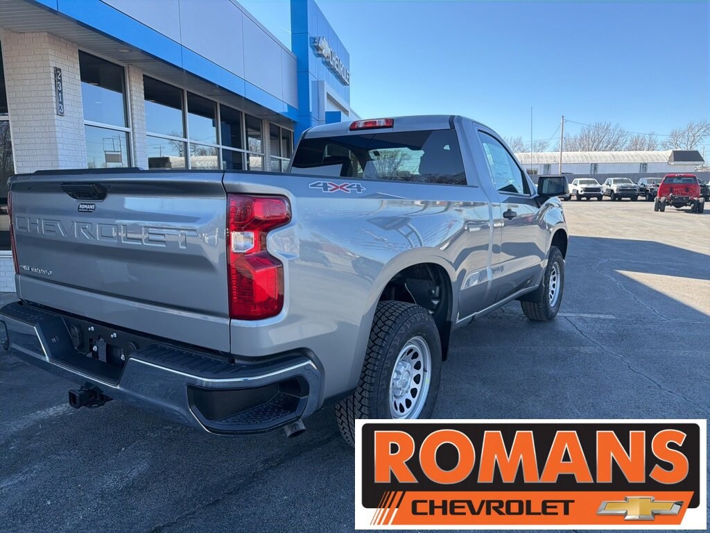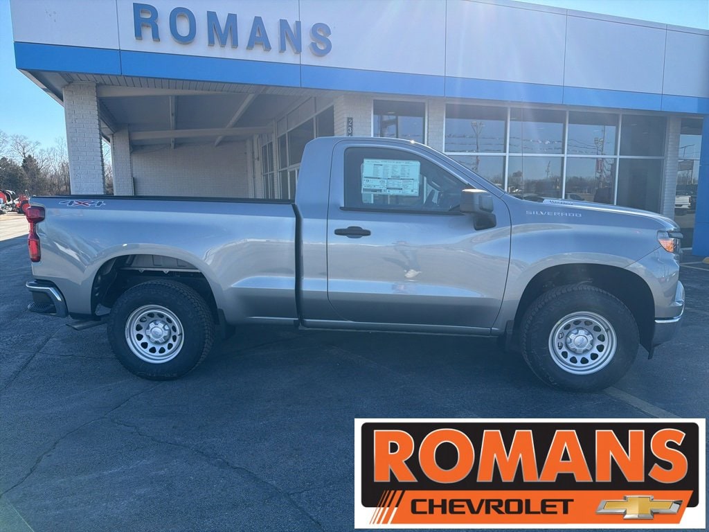 Sterling Gray Metallic 2026 Chevrolet Silverado 1500 WT 4x4 4WD 8-Speed Automatic 2.7L I4 Turbocharged DOHC 16V LEV3-SULEV30 310hp 8-Speed Automatic, 4WD, Jet Black w/Cloth Seat Trim, Deep-Tinted Glass, Electric Rear-Window Defogger, Hitch Guidance, Standard Suspension Package, Trailering Package, WT Convenience Package, WT Value Package, 2 Speakers, 2-Speaker Audio System, 220 Amp Alternator, 3.42 Rear Axle Ratio, 3.5 Monochromatic Display Driver Info Center, 4-Way Manual Driver Seat Adjuster, 4-Wheel Disc Brakes, 40/20/40 Front Split Bench Seat, ABS brakes, Air Conditioning, Apple CarPlay/Android Auto, Auto High-beam Headlights, Automatic Emergency Braking, Black (Semi-Gloss) Front Bumper, Black (Semi-Gloss) Rear Bumper, Bluetooth® For Phone, Brake assist, Color-Keyed Carpeting Floor Covering, Compass, Delay-off headlights, Driver door bin, Dual front impact airbags, Dual front side impact airbags, Electronic Cruise Control, Electronic Stability Control, Emergency communication system: OnStar, Following Distance Indicator, Forward Collision Alert, Front anti-roll bar, Front Center Armrest w/Storage, Front Chrome Bumper, Front Frame-Mounted Black Recovery Hooks, Front Pedestrian Braking, Front reading lights, Front Rubberized Vinyl Floor Mats, Front wheel independent suspension, Fully automatic headlights, HD Rear Vision Camera, Heated door mirrors, Heated Power-Adjustable Outside Mirrors, Illuminated entry, Inside Rearview Mirror with Tilt, IntelliBeam Automatic High Beam on/Off, Lane Keep Assist with Lane Departure Warning, Locking Tailgate, Low tire pressure warning, Manual Tailgate Function with No EZ Lift, Manual Tilt Wheel Steering Column, Occupant sensing airbag, OnStar Services Capable, Outside temperature display, Overhead airbag, Overhead console, Panic alarm, Passenger door bin, Passenger vanity mirror, Power door mirrors, Power Front Windows with Driver Express Up/Down, Power steering, Power windows, Premium audio system: Chevrolet Infotainment 3, Radio data system, Radio: Chevrolet Infotainment 3 System, Rear reading lights, Rear step bumper, Remote Keyless Entry, Remote keyless entry, Rubberized-Vinyl Floor Covering, SiriusXM Delete, Solar Absorbing Tinted Glass, Speed control, Speed-sensing steering, Standard Tailgate, Tachometer, Teen Driver, Tilt steering wheel, Tire Pressure Monitoring System, Traction control, Trip computer, Variably intermittent wipers, Vinyl Seat Trim, Voltmeter, Wheels: 17 x 8 Ultra Silver Painted Steel, Wi-Fi Hot Spot Capable, Recently Serviced., 8-Speed Automatic, 4WD, Jet Black w/Cloth Seat Trim, Deep-Tinted Glass, Electric Rear-Window Defogger, Hitch Guidance, Standard Suspension Package, Trailering Package, WT Convenience Package, WT Value Package. Price includes: $1000 - Chevrolet Trade Assistance Bonus Cash Program. Exp. 03/02/2026 $1000 - GM Bonus Cash. Exp. 03/02/2026 $3000 - Chevrolet Consumer Cash Program. Exp. 03/02/2026 $500 - GM First Responder Cash Allowance Program. Exp. 01/04/2027 $500 - GM Rewards Card Sales Sign Up and Spend Offer. Exp. 06/30/2026