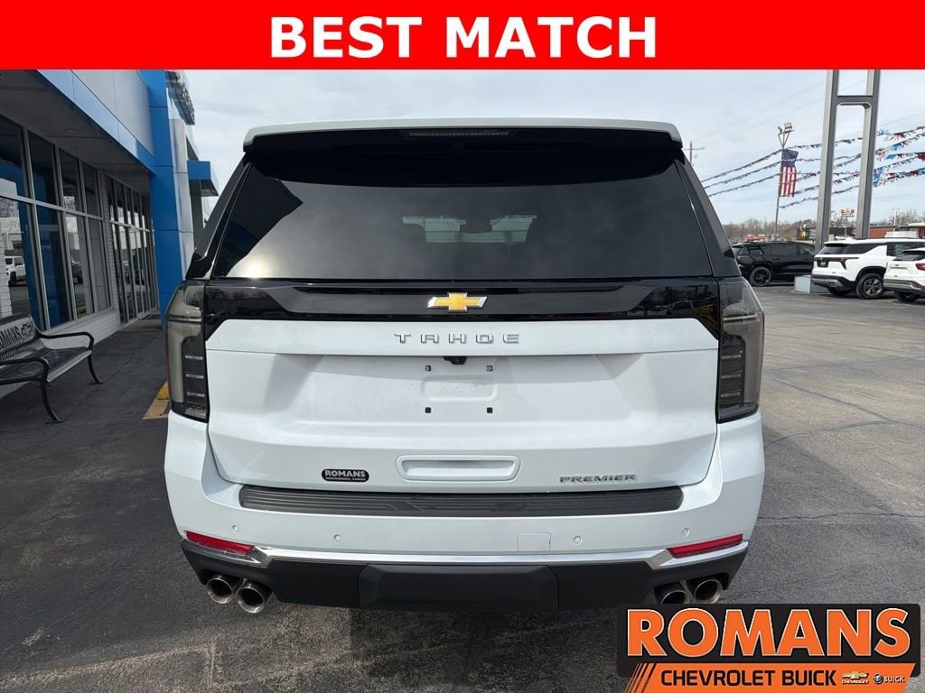 Polar White Tricoat 2026 Chevrolet Tahoe Premier 4x4 4WD 10-Speed Automatic with Overdrive EcoTec3 5.3L V8 4WD, Jet Black Leather, 1st and 2nd Row Color-Keyed Carpeted Floor Mats, 2-Speed Active Electronic AutoTrac Transfer Case, 20 x 9 Polished Aluminum Wheels, 3-Spoke Wrapped Steering Wheel, 3rd Row 60/40 Power-Folding Split-Bench Seat, Advanced Trailering Package, Auto-Dimming Inside Rear-View Mirror, Blind Zone Steering Assist with Trailering, Bose 10-Speaker Centerpoint Surround Audio System Feature, Bright Front and Rear Door Sill Plates, Chrome Door Handles with Body-Color Strip, Chrome Mirror Caps, Color-Keyed Carpeting Floor Covering, Dual Exhaust System, Dual-Pane Power Panoramic Sunroof, Floor Console, Front Bucket Seats, Front LED Fog Lamps, Frontal Driver and Outboard Passenger Airbags, Heated 2nd Row Outboard Seats, Heated Steering Wheel, Hill Descent Control, Hitch View with Pan/Zoom Image Adjustment, Integrated Trailer Brake Controller, Interior Camera, Key Card, LED Headlamps with LED Daytime Running Lamps, LED Tail Lamps, Magnetic Ride Control Suspension, Max Trailering Package, Memory Settings, Navigation system: Google built-in compatibility (select service plan required, terms and limitations apply), Outside Heated Power-Adjustable Mirrors, Power Release 2nd Row Bucket Seats, Power Tilt and Telescopic Steering Column, Preferred Equipment Group 1LZ, Rear Power Liftgate, Remote Start, SiriusXM with 360L Trial Subscription, Smart Trailer Integration Indicator, Sun and Tow Package, Universal Home Remote, Wireless Phone Charging, 10 Speakers, 22 Black Wheels with Selective Machining, 3.23 Rear Axle Ratio, 3rd row seats: split-bench, 4-Way Power Driver Lumbar Seat Adjuster, 4-Way Power Front Passenger Lumbar Seat Adjuster, 4-Wheel Disc Brakes, 8-Way Power Driver Seat Adjuster, 8-Way Power Front Passenger Seat Adjuster, ABS brakes, Adaptive suspension, Air Conditioning, Alloy wheels, AM/FM radio: SiriusXM with 360L, Apple CarPlay/Android Auto, Auto High-beam Headlights, Auto-dimming door mirrors, Auto-dimming Rear-View mirror, Auto-leveling suspension, Automatic temperature control, Brake assist, Bumpers: body-color, Compass, Delay-off headlights, Driver and Front Passenger Heated and Ventilated Seats, Driver door bin, Driver vanity mirror, Dual front impact airbags, Dual front side impact airbags, Electronic Stability Control, Emergency communication system: OnStar and Chevrolet connected services capable, Exterior Parking Camera Rear, Extra Capacity Cooling System, Four wheel independent suspension, Front anti-roll bar, Front Center Armrest, Front dual zone A/C, Front fog lights, Front reading lights, Fully automatic headlights, Garage door transmitter, Heated door mirrors, Heated Driver and Front Passenger Seats, Heated front seats, Heated rear seats, Heated steering wheel, Illuminated entry, Low tire pressure warning, Memory seat, Occupant sensing airbag, Outside temperature display, Overhead airbag, Overhead console, Panic alarm, Passenger door bin, Passenger vanity mirror, Perforated Leather Seat Trim, Power door mirrors, Power driver seat, Power Liftgate, Power passenger seat, Power steering, Power windows, Premium audio system: Chevrolet Infotainment 3 Premium, Radio data system, Radio: 17.7 Diagonal Advanced Color LCD Display, Rain sensing wipers, Rear air conditioning, Rear anti-roll bar, Rear reading lights, Rear window defroster, Rear window wiper, Remote keyless entry, Security system, Speed control, Speed-sensing steering, Split folding rear seat, Spoiler, Steering wheel memory, Steering wheel mounted audio controls, Tachometer, Telescoping steering wheel, Tilt steering wheel, Traction control, Trip computer, Turn signal indicator mirrors, Variably intermittent wipers, Ventilated front seats, Voltmeter, Wheels: 22 x 9 Steel Interim, Recently Servic Price includes: $500 - GM Military Cash Allowance Program. Exp. 01/04/2027 $500 - GM Rewards Card Sales