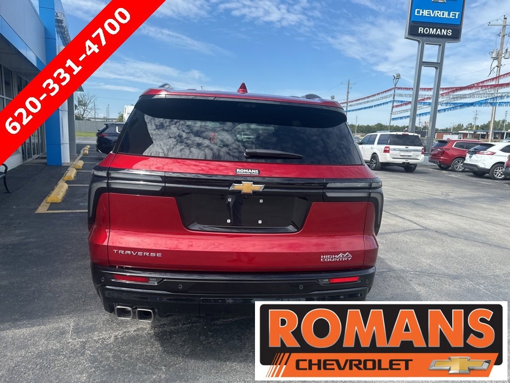 Radiant Red Tintcoat 2026 Chevrolet Traverse High Country FWD 8-Speed Automatic 2.5L DOHC Bose Premium 12-Speaker Audio System Feature, Navigation System, Preferred Equipment Group 1LZ, Radio data system, 12 Speakers, 3rd row seats: split-bench, 4-Wheel Disc Brakes, 6-Way Power Front Passenger Seat Adjuster, 8-Way Power Driver Seat Adjuster, ABS brakes, Air Conditioning, Alloy wheels, AM/FM radio: SiriusXM with 360L, Apple CarPlay/Android Auto, Auto High-beam Headlights, Auto tilt-away steering wheel, Auto-dimming door mirrors, Automatic temperature control, Brake assist, Bumpers: body-color, Child-Seat-Sensing Airbag, Compass, Delay-off headlights, Driver 4-Way Power Lumbar Seat Adjuster, Driver door bin, Driver vanity mirror, Dual front impact airbags, Dual front side impact airbags, Electronic Stability Control, Emergency communication system: OnStar, Exterior Parking Camera Rear, Four wheel independent suspension, Front anti-roll bar, Front Bucket Seats, Front Center Armrest, Front dual zone A/C, Front Passenger 4-Way Power Lumbar Seat Adjuster, Front reading lights, Fully automatic headlights, Garage door transmitter, Heated door mirrors, Heated front seats, Heated rear seats, Heated steering wheel, Illuminated entry, Low tire pressure warning, Memory seat, Occupant sensing airbag, Outside temperature display, Overhead airbag, Overhead console, Panic alarm, Passenger door bin, Passenger vanity mirror, Perforated Leather-Appointed Seat Trim, Power door mirrors, Power driver seat, Power Liftgate, Power passenger seat, Power steering, Power windows, Rain sensing wipers, Rear air conditioning, Rear anti-roll bar, Rear reading lights, Rear window defroster, Rear window wiper, Remote keyless entry, Security system, Speed control, Speed-sensing steering, Spoiler, Steering wheel memory, Steering wheel mounted audio controls, Tachometer, Telescoping steering wheel, Tilt steering wheel, Traction control, Trip computer, Turn signal indicator mirrors, Variably intermittent wipers, Ventilated front seats, Voltmeter, Wheels: 22 High-Gloss Black Aluminum, Bose Premium 12-Speaker Audio System Feature, Navigation System, Preferred Equipment Group 1LZ, Radio data system.