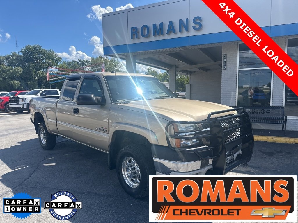 *Family owned since 1967* Clean CARFAX. 2004 Chevrolet Silverado 2500HD LT EXTENDED CAB 4X4 Sandstone Metallic LT EXTENDED CAB 4X4 EXTENDED CAB 4WD Allison 1000 5-Speed Automatic Duramax 6.6L V8 Turbodiesel Duramax 6.6L V8 Turbodiesel, Allison 1000 5-Speed Automatic, 4WD, 10-Way Power Front Passenger Seat Adjuster, 2 Front Frame-Mounted Recovery Hooks, 4-Wheel Disc Brakes, ABS brakes, Air Conditioning, AM/FM radio, Automatic temperature control, Black Leather-Wrapped Steering Wheel Rim, Black Power Folding Outside Rear-View Mirrors, CD player, Color-Keyed Bodyside Moldings, Color-Keyed Carpeting w/Rubberized Vinyl Floormats, Color-Keyed Grille Surround w/Chrome Accent Bar, a Dual 770 CCA Heavy-Duty Batteries for those cold mornings, Dual front impact airbags, Dual-Zone Automatic Air Conditioning, Electric Rear-Window Defogger, Electrochromic Inside Rear-View Mirror, Electronic Cruise Control w/Set & Resume Speed, Electronic Shift Transfer Case, Engine Block Heater, Floor Console w/Dual Cupholders, Front anti-roll bar, Front dual zone A/C, Front Halogen Fog Lamps, Front wheel independent suspension, Heavy-Duty Auxiliary External Transmission Oil Cooler, Heavy-Duty Handling/Trailering Suspension Package, Heavy-Duty Power Package, Heavy-Duty Rear Locking Differential, Heavy-Duty Trailering Equipment, LT Decor 1SC, Memory seat, OnStar: 1-Year Safe & Sound Service, Overhead Mini Console w/Map Lights, Passenger cancellable airbag, Power Door Locks, Power driver seat, Power steering, Power windows, Power Windows w/Driver & Passenger Express-Down, Radio data system, Rear Chrome Step Bumper w/Pad, Remote keyless entry, Remote Keyless Entry w/2 Transmitters, Solar-Ray Deep Tinted Glass, Steering wheel mounted audio controls, Steering Wheel Mounted Radio Controls, 3.73 Rear Axle Ratio, 4.10 Rear Axle Ratio, Bumpers: chrome, Driver door bin, Fully automatic headlights, Passenger door bin, Passenger vanity mirror, Radiator Grille & Front Bumper Opening Covers, Rear step bumper, Spare Tire Lock, Tachometer, Tilt steering wheel, Variably intermittent wipers, Voltmeter, Recently Serviced., Duramax 6.6L V8 Turbodiesel, Allison 1000 5-Speed Automatic, 4WD, 10-Way Power Front Passenger Seat Adjuster, 2 Front Frame-Mounted Recovery Hooks, 4-Wheel Disc Brakes, ABS brakes, Air Conditioning, AM/FM radio, Automatic temperature control, Black Leather-Wrapped Steering Wheel Rim, Black Power Folding Outside Rear-View Mirrors, CD player, Color-Keyed Bodyside Moldings, Color-Keyed Carpeting w/Rubberized Vinyl Floormats, Color-Keyed Grille Surround w/Chrome Accent Bar, a Dual 770 CCA Heavy-Duty Batteries for those cold mornings, Dual front impact airbags, Dual-Zone Automatic Air Conditioning, Electric Rear-Window Defogger, Electrochromic Inside Rear-View Mirror, Electronic Cruise Control w/Set & Resume Speed, Electronic Shift Transfer Case, Engine Block Heater, Floor Console w/Dual Cupholders, Front anti-roll bar, Front dual zone A/C, Front Halogen Fog Lamps, Front wheel independent suspension, Heavy-Duty Auxiliary External Transmission Oil Cooler, Heavy-Duty Handling/Trailering Suspension Package, Heavy-Duty Power Package, Heavy-Duty Rear Locking Differential, Heavy-Duty Trailering Equipment, LT Decor 1SC, Memory seat, OnStar: 1-Year Safe & Sound Service, Overhead Mini Console w/Map Lights, Passenger cancellable airbag, Power Door Locks, Power driver seat, Power steering, Power windows, Power Windows w/Driver & Passenger Express-Down, Radio data system, Rear Chrome Step Bumper w/Pad, Remote keyless entry, Remote Keyless Entry w/2 Transmitters, Solar-Ray Deep Tinted Glass, Steering wheel mounted audio controls, Steering Wheel Mounted Radio Controls.