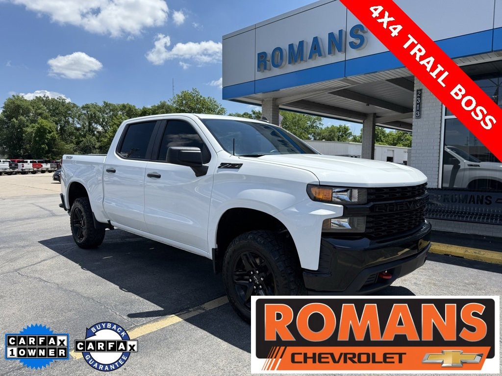 *Family owned since 1967* CARFAX One-Owner. 2021 Chevrolet Silverado 1500 Custom Trail Boss 4X4 Summit White Custom Trail Boss 4X4 4D Crew Cab 4WD 6-Speed Automatic Electronic with Overdrive EcoTec3 4.3L V6 6-Speed Automatic Electronic with Overdrive, 4WD, Black Cloth, 170 Amp Alternator, 3.5 Diagonal Monochromatic Display, 4G LTE Wi-Fi Hot Spot Capable, Auto-Locking Rear Differential, Bluetooth® For Phone, Chevrolet Connected Access Capable, Color-Keyed Carpeting Floor Covering, Compass, Custom Convenience Package, Deep-Tinted Glass, Electric Rear-Window Defogger, Electronic Cruise Control, EZ Lift Power Lock & Release Tailgate, Front Rubberized Vinyl Floor Mats, Heavy-Duty Air Filter, High Gloss Black Grille, Hill Descent Control, Hitch Guidance, Infotainment Package, LED Cargo Area Lighting, Manual Tilt Wheel Steering Column, OnStar & Chevrolet Connected Services Capable, Performance Red Recovery Hooks, Power Door Locks, Power Front Windows w/Driver Express Up/Down, Power Front Windows w/Passenger Express Down, Power Rear Windows w/Express Down, Preferred Equipment Group 2CX, Rear 60/40 Folding Bench Seat (Folds Up), Rear Rubberized-Vinyl Floor Mats, Remote Keyless Entry, Remote Vehicle Starter System, SiriusXM Radio, Standard Tailgate, Suspension Package, Theft Deterrent System (Unauthorized Entry), Trailering Package, 3.42 Rear Axle Ratio, 4-Wheel Disc Brakes, 40/20/40 Front Split Bench Seat, 6 Speakers, ABS brakes, Air Conditioning, Alloy wheels, AM/FM radio: SiriusXM, Apple CarPlay/Android Auto, Brake assist, Cloth Seat Trim, Delay-off headlights, Driver door bin, Driver vanity mirror, Dual front impact airbags, Dual front side impact airbags, Electronic Stability Control, Front anti-roll bar, Front Center Armrest w/Storage, Front License Plate Kit, Front reading lights, Front wheel independent suspension, Fully automatic headlights, Heated door mirrors, Illuminated entry, Low tire pressure warning, Occupant sensing airbag, Off-Road Suspension w/2 Lift, Outside temperature display, Overhead airbag, Overhead console, Panic alarm, Passenger door bin, Passenger vanity mirror, Polished Exhaust Tip, Power door mirrors, Power steering, Power windows, Premium audio system: Chevrolet Infotainment 3, Radio data system, Radio: Chevrolet Infotainment 3 System, Rear reading lights, Rear step bumper, Rear window defroster, Remote keyless entry, Security system, Speed control, Speed-sensing steering, Split folding rear seat, Tachometer, Tilt steering wheel, Traction control, Trip computer, Variably intermittent wipers, Voltmeter, Wheels: 18 x 8.5 Black Painted Aluminum, Recently Serviced., 6-Speed Automatic Electronic with Overdrive, 4WD, Black Cloth, 170 Amp Alternator, 3.5 Diagonal Monochromatic Display, 4G LTE Wi-Fi Hot Spot Capable, Auto-Locking Rear Differential, Bluetooth® For Phone, Chevrolet Connected Access Capable, Color-Keyed Carpeting Floor Covering, Compass, Custom Convenience Package, Deep-Tinted Glass, Electric Rear-Window Defogger, Electronic Cruise Control, EZ Lift Power Lock & Release Tailgate, Front Rubberized Vinyl Floor Mats, Heavy-Duty Air Filter, High Gloss Black Grille, Hill Descent Control, Hitch Guidance, Infotainment Package, LED Cargo Area Lighting, Manual Tilt Wheel Steering Column, OnStar & Chevrolet Connected Services Capable, Performance Red Recovery Hooks, Power Door Locks, Power Front Windows w/Driver Express Up/Down, Power Front Windows w/Passenger Express Down, Power Rear Windows w/Express Down, Preferred Equipment Group 2CX, Rear 60/40 Folding Bench Seat (Folds Up), Rear Rubberized-Vinyl Floor Mats, Remote Keyless Entry, Remote Vehicle Starter System, SiriusXM Radio, Standard Tailgate, Suspension Package, Theft Deterrent System (Unauthorized Entry), Trailering Package.