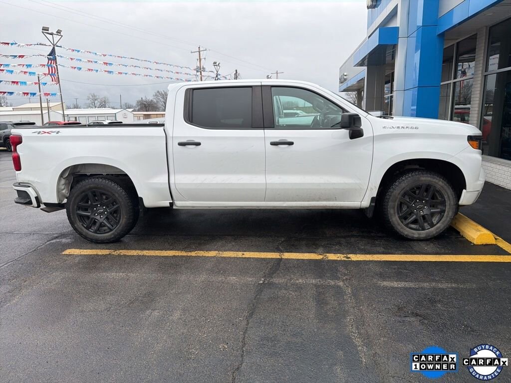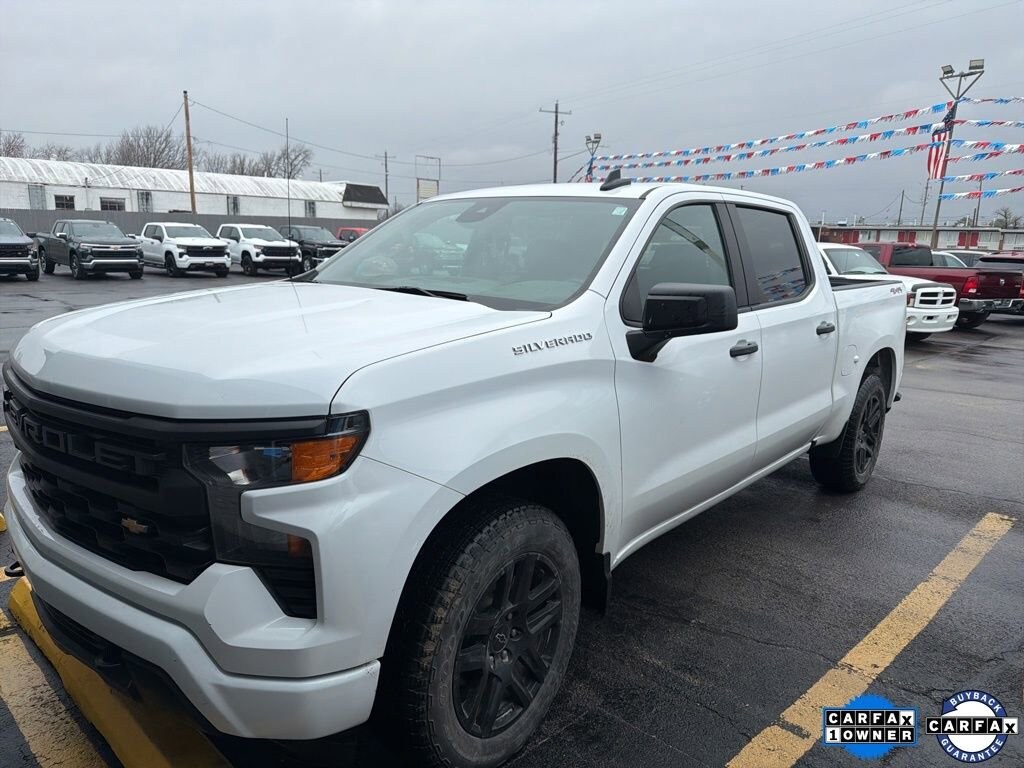 *Family owned since 1967* Clean CARFAX. 2023 Chevrolet Silverado 1500 Custom 4X4 Summit White Custom 4X4 4D Crew Cab 4WD 8-Speed Automatic 2.7L Turbo 8-Speed Automatic, 4WD, Black Cloth, 10-Way Power Driver Seat w/Lumbar, 120-Volt Bed Mounted Power Outlet, 120-Volt Instrument Panel Power Outlet, 3.5 Monochromatic Display Driver Info Center, Bluetooth® For Phone, Chevrolet Connected Access Capable, Color-Keyed Carpeting Floor Covering, Compass, Custom Convenience Package, Custom Value Package, Deep-Tinted Glass, Dual Rear USB Ports (Charge Only), Electric Rear-Window Defogger, Electrical Steering Column Lock, Electronic Cruise Control, EZ Lift Power Lock & Release Tailgate, Front Frame-Mounted Black Recovery Hooks, Front Rubberized Vinyl Floor Mats, HD Rear Vision Camera, High Capacity Suspension Package, Hitch Guidance, LED Cargo Area Lighting, Manual Tilt Wheel Steering Column, OnStar & Chevrolet Connected Services Capable, Power Front Windows w/Driver Express Up/Down, Power Front Windows w/Passenger Express Down, Power Rear Windows w/Express Down, Preferred Equipment Group 1CX, Rear 60/40 Folding Bench Seat (Folds Up), Rear Rubberized-Vinyl Floor Mats, Remote Keyless Entry, Remote Vehicle Starter System, SiriusXM Radio, Standard Tailgate, Theft Deterrent System (Unauthorized Entry), Trailering Package, Wi-Fi Hot Spot Capable, Wireless Phone Projection, 3.42 Rear Axle Ratio, 4-Wheel Disc Brakes, 40/20/40 Front Split-Bench Seat, 6 Speakers, 6-Speaker Audio System, ABS brakes, Air Conditioning, Alloy wheels, AM/FM radio: SiriusXM, Apple CarPlay/Android Auto, Auto High-beam Headlights, Automatic Emergency Braking, Brake assist, Bumpers: body-color, Cloth Seat Trim, Delay-off headlights, Driver door bin, Driver vanity mirror, Dual front impact airbags, Dual front side impact airbags, Electronic Stability Control, Following Distance Indicator, Forward Collision Alert, Front anti-roll bar, Front Center Armrest w/Storage, Front Pedestrian Braking, Front reading lights, Front wheel independent suspension, Fully automatic headlights, Heated door mirrors, Illuminated entry, IntelliBeam Automatic High Beam On/Off, Lane Keep Assist w/Lane Departure Warning, Low tire pressure warning, Not Equipped w/Rear USB Ports, Not Equipped w/Steering Column Lock, Occupant sensing airbag, Outside temperature display, Overhead airbag, Overhead console, Panic alarm, Passenger door bin, Passenger vanity mirror, Power door mirrors, Power driver seat, Power steering, Power windows, Premium audio system: Chevrolet Infotainment 3, Radio data system, Radio: Chevrolet Infotainment 3 System, Rear reading lights, Rear step bumper, Rear window defroster, Remote keyless entry, Security system, Speed control, Speed-sensing steering, Split folding rear seat, Tachometer, Tilt steering wheel, Traction control, Trip computer, Variably intermittent wipers, Voltmeter, Wheels: 20 x 9 Bright Silver Painted Aluminum, Wheels: 20 x 9 High Gloss Black Painted Alum, Recently Serviced., 8-Speed Automatic, 4WD, Black Cloth, 10-Way Power Driver Seat w/Lumbar, 120-Volt Bed Mounted Power Outlet, 120-Volt Instrument Panel Power Outlet, 3.5 Monochromatic Display Driver Info Center, Bluetooth® For Phone, Chevrolet Connected Access Capable, Color-Keyed Carpeting Floor Covering, Compass, Custom Convenience Package, Custom Value Package, Deep-Tinted Glass, Dual Rear USB Ports (Charge Only), Electric Rear-Window Defogger, Electrical Steering Column Lock, Electronic Cruise Control, EZ Lift Power Lock & Release Tailgate, Front Frame-Mounted Black Recovery Hooks, Front Rubberized Vinyl Floor Mats, HD Rear Vision Camera, High Capacity Suspension Package, Hitch Guidance, LED Cargo Area Lighting, Manual Tilt Wheel Steering Column, OnStar & Chevrolet Connected Services Capable, Power Front Windows w/Driver Express Up/Down, Power Front Windows w/Passenger Express Down, Power Rear Windows w/Express Down, Preferred Equipment Group 1CX, Rear 60/40 Fol