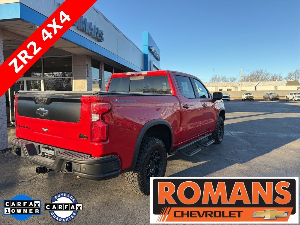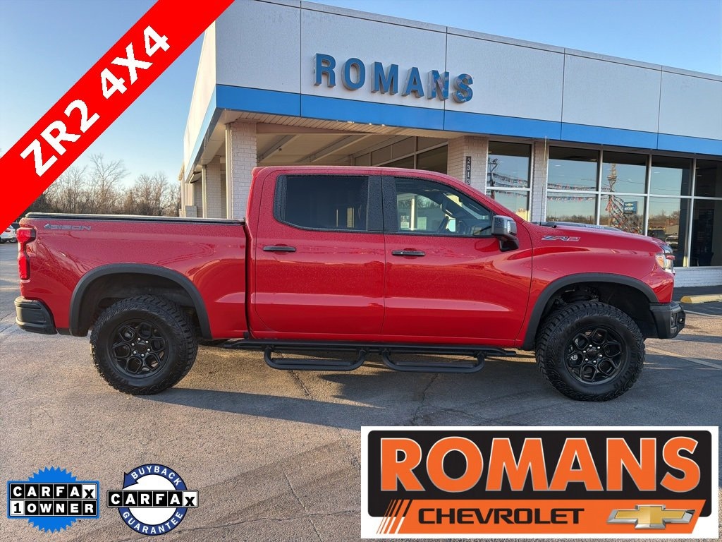*Family owned since 1967* Clean CARFAX. CARFAX One-Owner. 2024 Chevrolet Silverado 1500 ZR2 4x4 Red Hot ZR2 4x4 4D Crew Cab 4WD 10-Speed Automatic 3.0L I6 10-Speed Automatic, 4WD, Jet Black/Graystone Leather, 10-Way Power Driver Seat w/Lumbar, 10-Way Power Passenger Seat Adjuster w/Lumbar, 12.3 Multicolor Reconfigurable Digital Display, 120-Volt Bed Mounted Power Outlet, 120-Volt Interior Power Outlet, 15 Diagonal Multicolor Head-Up Display, 2 USB Data Ports, 2nd Row Heated Outboard Seats, Adaptive Cruise Control, AEV Front Bumper, AEV Fuel Tank Skid Plate, AEV Rear Bumper, All-Weather AEV Floor Liners (LPO), All-Weather Floor Liner (LPO), Auto-Dimming Inside Rear-View Mirror, Bed View Camera, Bluetooth® For Phone, Chevrolet Connected Access Capable, Chevytec Spray-On Black Bedliner, Color-Keyed Carpeting Floor Covering, Deep-Tinted Glass, Driver Memory, Dual Rear USB Ports (Charge Only), Electric Rear-Window Defogger, Electrical Steering Column Lock, Electronic Cruise Control, EZ Lift Power Lock & Release Tailgate, Floor Mounted Center Console, Front LED Fog Lamps, Front Rain-Sensing Wipers, HD Surround Vision, Heated Driver & Front Outboard Passenger Seats, Heated Steering Wheel, Heavy-Duty Air Filter, High Gloss Black Mirror Caps, Hill Descent Control, Hitch Guidance, Hitch Guidance w/Hitch View, In-Vehicle Trailering System App, Integrated Trailer Brake Controller, Keyless Open & Start, LED Cargo Area Lighting, Manual Tilt/Telescoping Steering Column, Multi-Flex Tailgate, OnStar & Chevrolet Connected Services Capable, Outside Heated Power-Adjustable Mirrors, Performance Red Recovery Hooks, Perimeter Lighting, Power Front Passenger Windows w/Express Up/Down, Power Front Windows w/Driver Express Up/Down, Power Rear Windows w/Express Down, Power Sliding Rear Window w/Rear Defogger, Power Tilt & Telescoping Steering Column, Preferred Equipment Group 3LT, Rear Camera Mirror, Rear Cross Traffic Braking, Rear Park Assist, Rear Pedestrian Alert, Rear Wheelhouse Liners, Remote Vehicle Starter System, Rocker Protector (LPO), Safety Alert Seat, SiriusXM w/360L, Standard Tailgate, Steering Wheel Audio Controls, Technology Package, Theft Deterrent System (Unauthorized Entry), Trailer Camera Provisions, Trailer Side Blind Zone Alert, Trailering Package, Ultrasonic Front & Rear Park Assist, Universal Home Remote, Up-Level Rear Seat w/Storage Package, Ventilated Driver & Front Passenger Seats, Wheels: 18 x 8.5 Aluminum AEV, Wi-Fi Hot Spot Capable, Wrapped Steering Wheel, ZR2 Bison Edition, ZR2 Suspension Package, 220 Amp Alternator, 3.23 Rear Axle Ratio, 4-Wheel Disc Brakes, 7 Speakers, 850 Cold-Cranking Amps Heavy-Duty Battery, ABS brakes, Air Conditioning, Alloy wheels, AM/FM radio: SiriusXM with 360L, Auto High-beam Headlights, Auto-dimming door mirrors, Auto-dimming Rear-View mirror, Automatic Emergency Braking, Automatic temperature control, Block heater, Brake assist, Compass, Delay-off headlights, Driver door bin, Driver vanity mirror, Dual Exhaust, Dual front impact airbags, Dual front side impact airbags, Electronic Stability Control, Electronic Transmission Range Selector Shifter, Engine Block Heater, Following Distance Indicator, Forward Collision Alert, Front anti-roll bar, Front Bucket Seats, Front Center Armrest, Front dual zone A/C, Front fog lights, Front Pedestrian Braking, Front reading lights, Front wheel independent suspension, Fully automatic headlights, Garage door transmitter, Heated door mirrors, Heated front seats, Heated rear seats, Heated steering wheel, Illuminated entry, IntelliBeam Automatic High Beam On/Off, Lane Keep Assist w/Lane Departure Warning, Low tire pressure warning, Memory seat, Occupant sensing airbag, Off-Road Removable Assist Steps (LPO), Outside temperature display, Overhead airbag, Overhead console, Panic alarm, Passenger door bin, Passenger vanity mirror, Perforated Leather Seat Trim, Power door mirrors, Power driver seat, Power passenger sea