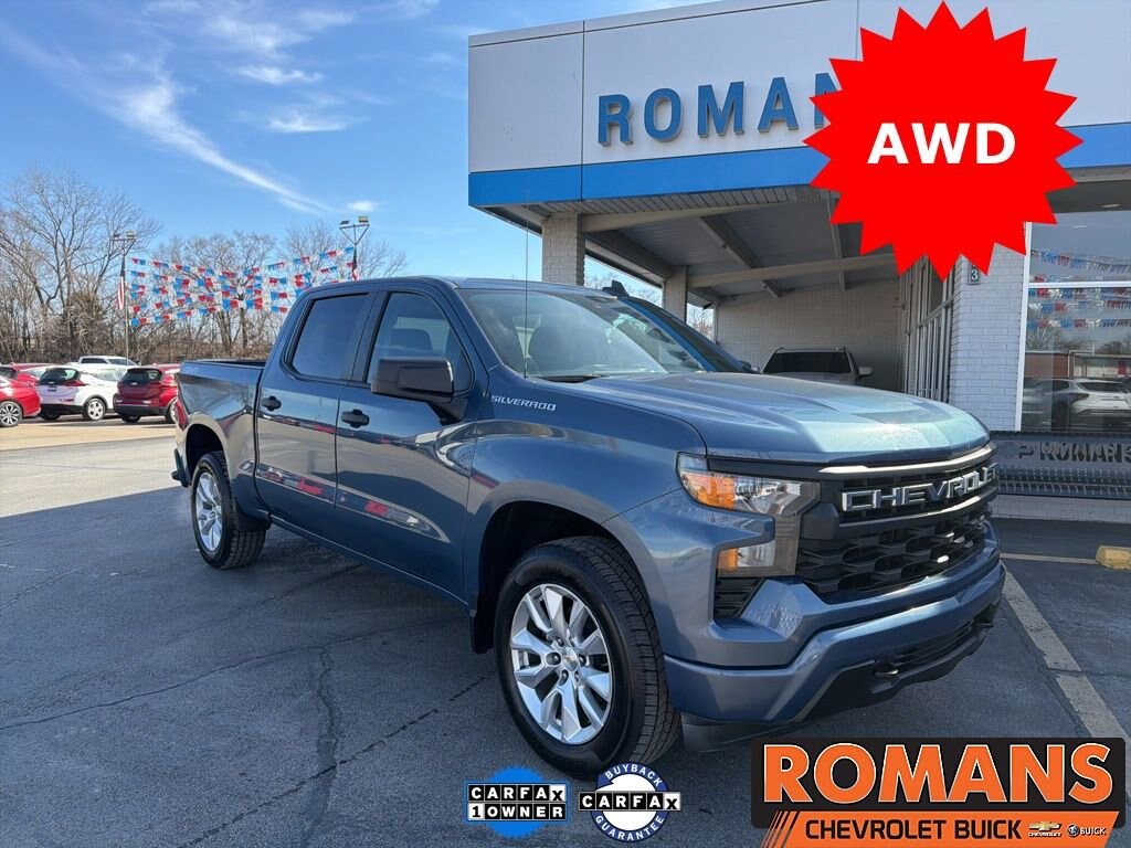 *Family owned since 1967* CARFAX One-Owner. 2024 Chevrolet Silverado 1500 Custom 4X4 Lakeshore Blue Metallic Custom 4X4 4D Crew Cab 4WD 8-Speed Automatic 2.7L I4 Turbocharged DOHC 16V LEV3-SULEV30 310hp 8-Speed Automatic, 4WD, Black Cloth, 10-Way Power Driver Seat w/Lumbar, 120-Volt Bed Mounted Power Outlet, 120-Volt Interior Power Outlet, 3.5 Monochromatic Display Driver Info Center, Black Name Plates (LPO), Bluetooth® For Phone, Chevrolet Connected Access Capable, Color-Keyed Carpeting Floor Covering, Custom Convenience Package, Custom Value Package, Dark Essentials Package (LPO), Deep-Tinted Glass, Dual Rear USB Ports (Charge Only), Electric Rear-Window Defogger, Electrical Steering Column Lock, Electronic Cruise Control, EZ Lift Power Lock & Release Tailgate, Front Frame-Mounted Black Recovery Hooks, Front Rubberized Vinyl Floor Mats, HD Rear Vision Camera, High Capacity Suspension Package, Hitch Guidance, LED Cargo Area Lighting, Manual Tilt Wheel Steering Column, OnStar & Chevrolet Connected Services Capable, Power Front Windows w/Driver Express Up/Down, Power Front Windows w/Passenger Express Down, Power Rear Windows w/Express Down, Preferred Equipment Group 1CX, Premium audio system: Chevrolet Infotainment 3, Rear 60/40 Folding Bench Seat (Folds Up), Rear Rubberized-Vinyl Floor Mats, Remote Keyless Entry, Remote Vehicle Starter System, SiriusXM Radio, Standard Tailgate, Theft Deterrent System (Unauthorized Entry), Trailering Package, Wi-Fi Hot Spot Capable, 3.42 Rear Axle Ratio, 4-Wheel Disc Brakes, 40/20/40 Front Split-Bench Seat, 6 Speakers, 6-Speaker Audio System, ABS brakes, Air Conditioning, Alloy wheels, AM/FM radio: SiriusXM, Auto High-beam Headlights, Auto-Locking Rear Differential, Automatic Emergency Braking, Black Tailgate CHEVROLET Lettering (LPO), Brake assist, Bumpers: body-color, Cloth Seat Trim, Compass, Delay-off headlights, Driver door bin, Driver vanity mirror, Dual front impact airbags, Dual front side impact airbags, Electronic Stability Control, Following Distance Indicator, Forward Collision Alert, Front anti-roll bar, Front Black Bowtie Emblem (LPO), Front Center Armrest w/Storage, Front Pedestrian Braking, Front reading lights, Front wheel independent suspension, Fully automatic headlights, Heated door mirrors, Illuminated entry, Integrated Trailer Brake Controller, IntelliBeam Automatic High Beam On/Off, Lane Keep Assist w/Lane Departure Warning, Low tire pressure warning, Molded Black Splash Guards (LPO), Occupant sensing airbag, Outside temperature display, Overhead airbag, Overhead console, Panic alarm, Passenger door bin, Passenger vanity mirror, Power door mirrors, Power driver seat, Power steering, Power windows, Radio data system, Radio: Chevrolet Infotainment 3 System, Rear reading lights, Rear step bumper, Rear Wheelhouse Liners, Rear window defroster, Remote keyless entry, Security system, Single Outlet Exhaust, Speed control, Speed-sensing steering, Split folding rear seat, Tachometer, Tilt steering wheel, Traction control, Trip computer, Variably intermittent wipers, Voltmeter, Wheels: 20 x 9 Bright Silver Painted Aluminum, Recently Serviced., 8-Speed Automatic, 4WD, Black Cloth, 10-Way Power Driver Seat w/Lumbar, 120-Volt Bed Mounted Power Outlet, 120-Volt Interior Power Outlet, 3.5 Monochromatic Display Driver Info Center, Black Name Plates (LPO), Bluetooth® For Phone, Chevrolet Connected Access Capable, Color-Keyed Carpeting Floor Covering, Custom Convenience Package, Custom Value Package, Dark Essentials Package (LPO), Deep-Tinted Glass, Dual Rear USB Ports (Charge Only), Electric Rear-Window Defogger, Electrical Steering Column Lock, Electronic Cruise Control, EZ Lift Power Lock & Release Tailgate, Front Frame-Mounted Black Recovery Hooks, Front Rubberized Vinyl Floor Mats, HD Rear Vision Camera, High Capacity Suspension Package, Hitch Guidance, LED Cargo Area Lighting, Manual Tilt Wheel Steering Column, OnStar & Chevrolet Conn