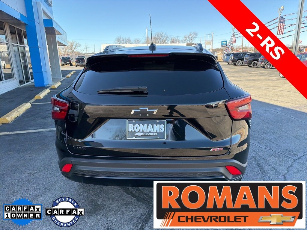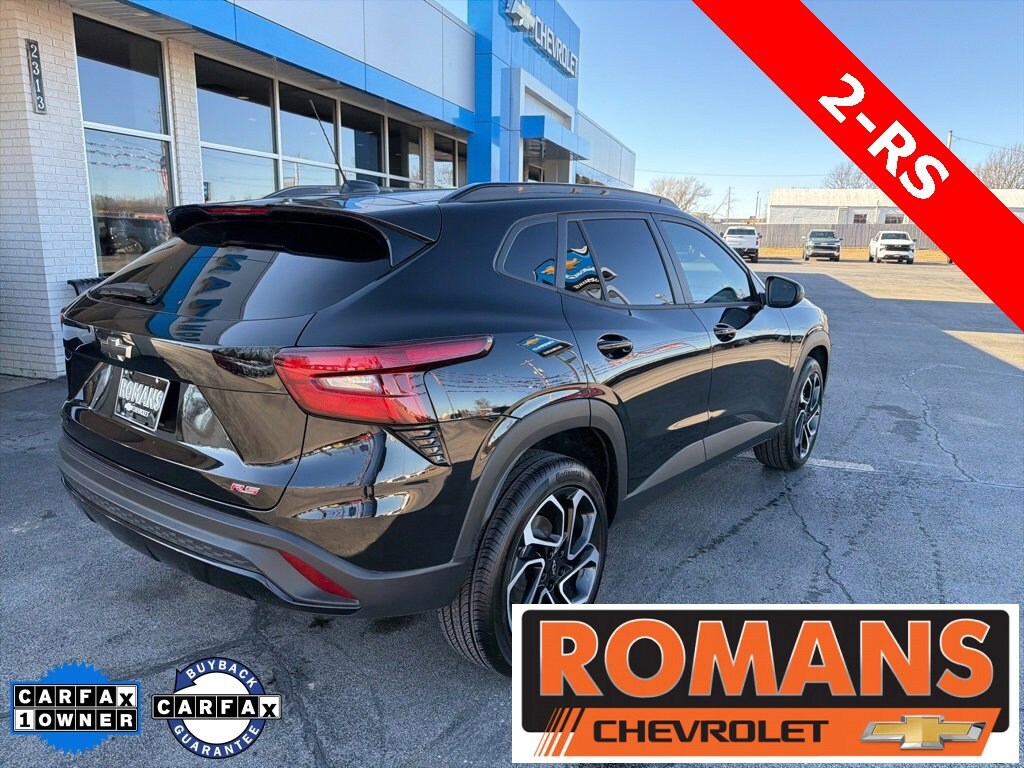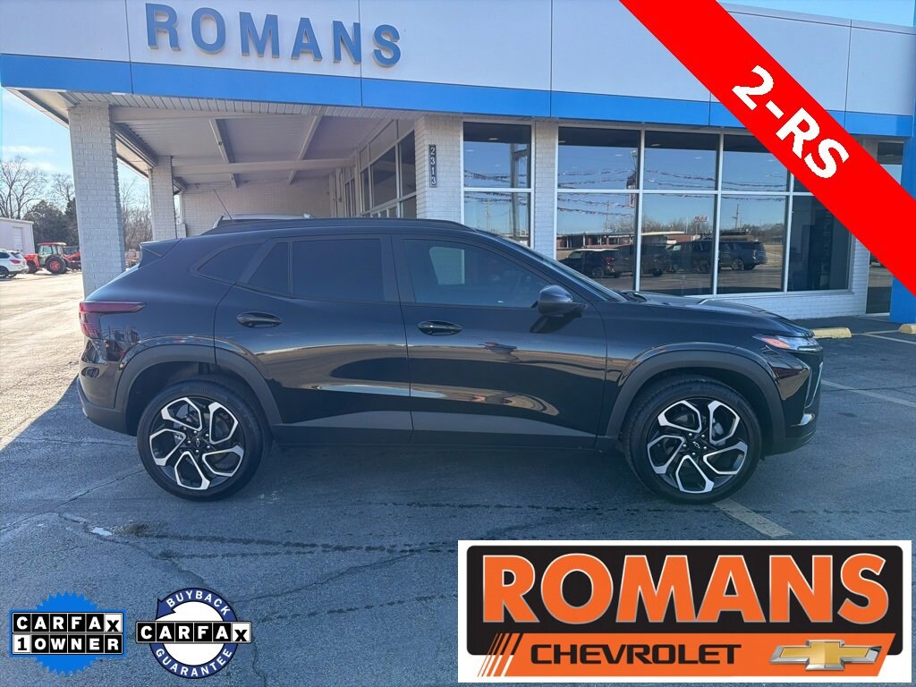 *Family owned since 1967* Clean CARFAX. CARFAX One-Owner. 2025 Chevrolet Trax 2RS Mosaic Black Metallic 2RS 4D Sport Utility FWD 6-Speed Automatic 1.2L I3 DI Turbocharged DOHC 12V LEV3-ULEV70 137hp Adaptive Cruise Control, Driver Confidence Package, Front and Rear All-Weather Floor Liners, Interior Protection Package, Jet Black Cargo Liner, Lane Change Alert with Side Blind Zone Alert, Preferred Equipment Group 2RS, Rear Cross-Traffic Alert, Rear Park Assist, 2-Way Adjustable Front Head Restraints, 2-Way Power Driver Lumbar Seat Adjuster, 3.50 Final Drive Axle Ratio, 4-Way Manual Front Passenger Seat Adjuster, 4-Wheel Disc Brakes, 6 Speakers, 6-Speaker Audio System Feature, 8-Way Power Driver Seat Adjuster, ABS brakes, Air Conditioning, Alloy wheels, AM/FM radio: SiriusXM, Auto High-beam Headlights, Automatic temperature control, Brake assist, Bumpers: body-color, Compass, Delay-off headlights, Driver door bin, Driver vanity mirror, Dual front impact airbags, Dual front side impact airbags, Electronic Stability Control, Emergency communication system: OnStar One Essentials, Evotex Seat Trim, Exterior Parking Camera Rear, Front anti-roll bar, Front Bucket Seats, Front Center Armrest, Front reading lights, Front wheel independent suspension, Fully automatic headlights, Heated door mirrors, Heated Driver and Front Passenger Seats, Heated front seats, Heated steering wheel, Illuminated entry, Leather steering wheel, Low tire pressure warning, Occupant sensing airbag, Outside temperature display, Overhead airbag, Overhead console, Panic alarm, Passenger door bin, Passenger vanity mirror, Power door mirrors, Power steering, Power windows, Premium audio system: Chevrolet Infotainment 3, Radio data system, Radio: AM/FM Stereo Audio System, Rear window defroster, Rear window wiper, Remote keyless entry, Security system, SiriusXM Trial Subscription, Speed control, Split folding rear seat, Spoiler, Sport steering wheel, Steering wheel mounted audio controls, Tachometer, Telescoping steering wheel, Tilt steering wheel, Traction control, Trip computer, Variably intermittent wipers, Wheels: 19 Black-Painted Machined Aluminum, Recently Serviced., Adaptive Cruise Control, Driver Confidence Package, Front and Rear All-Weather Floor Liners, Interior Protection Package, Jet Black Cargo Liner, Lane Change Alert with Side Blind Zone Alert, Preferred Equipment Group 2RS, Rear Cross-Traffic Alert, Rear Park Assist.