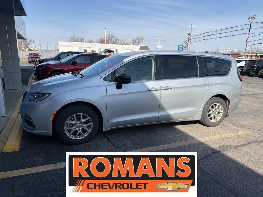 *Family owned since 1967* Clean CARFAX. CARFAX One-Owner. 2024 Chrysler Pacifica Touring L Silver Mist Clearcoat Touring L 4D Passenger Van FWD 9-Speed 948TE Automatic 3.6L V6 24V VVT Quick Order Package 27L, 10.1 Touchscreen Display, 17 x 7.0 Aluminum Wheels, 3.25 Axle Ratio, 3rd row seats: split-bench, 4-Wheel Disc Brakes, 6 Speakers, ABS brakes, Air Conditioning, Alloy wheels, AM/FM radio: SiriusXM, Apple CarPlay, Apple CarPlay/Android Auto, Automatic temperature control, Black Seats, Brake assist, Bumpers: body-color, Caprice Leatherette Bucket Seats, Compass, Delay-off headlights, Disassociated Touchscreen Display, Driver door bin, Driver vanity mirror, Driver's Seat Mounted Armrest, Dual front impact airbags, Dual front side impact airbags, Electronic Stability Control, Four wheel independent suspension, Front anti-roll bar, Front Bucket Seats, Front dual zone A/C, Front fog lights, Front reading lights, Fully automatic headlights, Google Android Auto, GPS Antenna Input, Heated door mirrors, Heated front seats, Heated steering wheel, Illuminated entry, Integrated Active Noise Cancellation, Integrated Center Stack Radio, Knee airbag, Low tire pressure warning, Manufacturer's Statement of Origin, Memory seat, Occupant sensing airbag, Outside temperature display, Overhead airbag, Overhead console, Panic alarm, ParkView Rear Back-Up Camera, Passenger door bin, Passenger seat mounted armrest, Passenger vanity mirror, Power door mirrors, Power driver seat, Power Liftgate, Power steering, Power windows, Radio data system, Radio: Uconnect 5 w/10.1 Display, Rain sensing wipers, Rear air conditioning, Rear reading lights, Rear window defroster, Rear window wiper, Reclining 3rd row seat, Remote keyless entry, Security system, Speed control, Split folding rear seat, Spoiler, Steering wheel mounted audio controls, Tachometer, Telescoping steering wheel, Tilt steering wheel, Touring Suspension, Traction control, Trip computer, Turn signal indicator mirrors, USB Host Flip, Variably intermittent wipers, Voltmeter, Recently Serviced., Quick Order Package 27L.