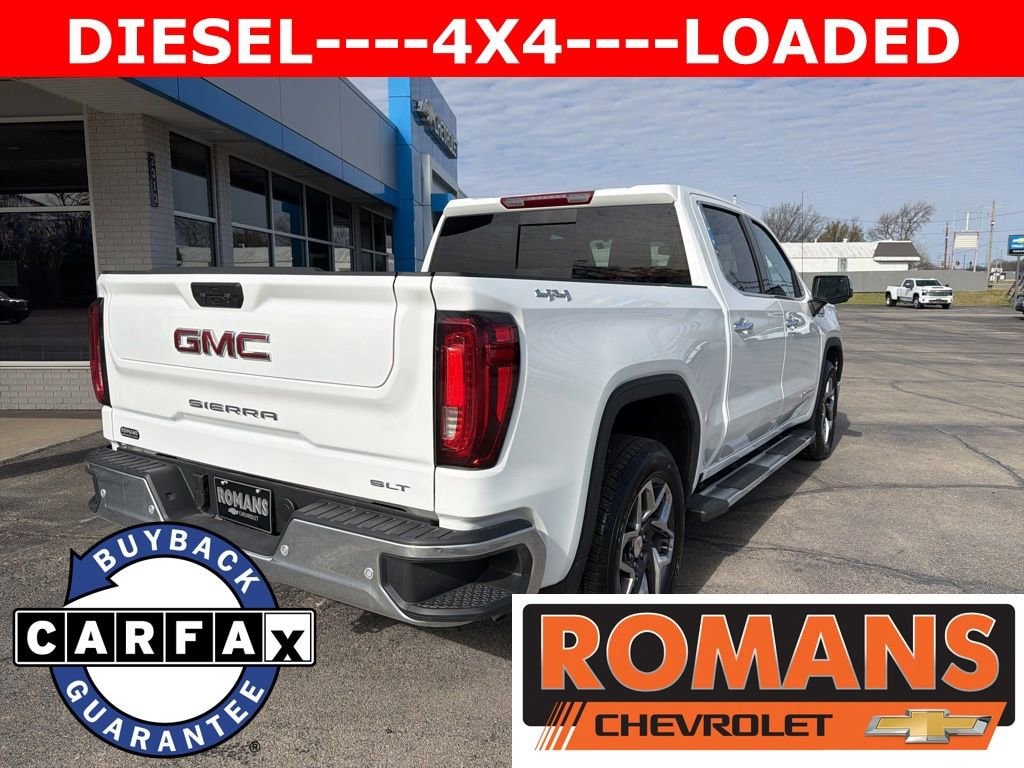 *Family owned since 1967* CARFAX One-Owner. 2025 GMC Sierra 1500 SLT 4X4 Summit White SLT 4X4 4D Crew Cab 4WD 10-Speed Automatic 3.0L I6 10-Speed Automatic, 4WD, Jet Black Leather, 120-Volt Bed Mounted Power Outlet, 120-Volt Interior Power Outlet, 170 Amp Alternator, 2 Charge/Data USB Ports, 2 Charge/Data USB Ports Inside Center Console, 2 Type-C Charge-Only Rear USB Ports, 6-Speaker Audio System Feature, Adaptive Cruise Control, Auto-Locking Rear Differential, Auxiliary External Transmission Oil Cooler, Chrome Header & Chrome Grille Insert Bars, Chrome Wheel To Wheel Assist Steps, Color-Keyed Carpeting Floor Covering, Deep-Tinted Glass, Electric Rear-Window Defogger, Electronic Precision Shift, Floor-Mounted Center Console, Front Bucket Seats, Front Frame-Mounted Black Recovery Hooks, Front Rain-Sensing Wipers, HD Rear Vision Camera, HD Surround Vision, Heated 2nd Row Outboard Seats, High Capacity Suspension Package, Hitch Guidance, Hitch View, In-Vehicle Trailering System App, Integrated Trailer Brake Controller, Keyless Open & Start, LED Cargo Area Lighting, Manual Tilt-Wheel & Telescoping Steering Column, OnStar Services Capable, Perimeter Lighting, Power Door Locks, Power Front Passenger Windows w/Express Up/Down, Power Front Windows w/Driver Express Up/Down, Power Rake & Telescoping Steering Column, Power Rear Windows w/Express Down, Power Sliding Rear Window w/Rear Defogger, Preferred Equipment Group 4SA, Premium Bose 7-Speaker Sound System, ProGrade Trailering System, Push Button Start, Rear Cross Traffic Braking, Rear Pedestrian Detection, Rear Wheelhouse Liners, Remote Vehicle Starter System, Safety Alert Seat, Sierra Safety Plus Package, SiriusXM w/360L Trial Subscription, SLT Convenience Package, SLT Preferred Package, SLT Premium Plus Package, Spray-On Pickup Bedliner w/GMC Logo, Standard Suspension Package, Steering Wheel Audio Controls, Theft Deterrent System (Unauthorized Entry), Trailer Camera Provisions, Trailer Side Blind Zone Alert, Trailering Package, Ultrasonic Front & Rear Park Assist, Universal Home Remote, Ventilated Driver & Front Passenger Seats, Wi-Fi Hotspot Capable, Wireless Charging, 10-Way Power Driver Seat Adjuster w/Lumbar, 10-Way Power Passenger Seat Adjuster w/Lumbar, 20 Polished Aluminum Wheels, 220 Amp Alternator, 3.23 Rear Axle Ratio, 4-Wheel Disc Brakes, 6 Speakers, ABS brakes, Air Conditioning, Alloy wheels, AM/FM radio: SiriusXM with 360L, Apple CarPlay/Android Auto, Auto High-beam Headlights, Auto-dimming door mirrors, Auto-dimming Rear-View mirror, Automatic Emergency Braking, Automatic temperature control, Brake assist, Buckle to Drive, Bumpers: chrome, Compass, Delay-off headlights, Driver door bin, Driver Memory, Driver vanity mirror, Dual front impact airbags, Dual front side impact airbags, Electronic Stability Control, Emergency communication system: OnStar, Engine Block Heater, Following Distance Indicator, Forward Collision Alert, Front 40/20/40 Split-Bench Seat, Front anti-roll bar, Front Center Armrest w/Storage, Front dual zone A/C, Front fog lights, Front License Plate Kit, Front Pedestrian Braking, Front reading lights, Front wheel independent suspension, Fully automatic headlights, Heated door mirrors, Heated Driver & Front Outboard Passenger Seating, Heated front seats, Heated steering wheel, Illuminated entry, IntelliBeam Automatic High Beam On/Off, Lane Keep Assist w/Lane Departure Warning, Low tire pressure warning, Memory seat, Navigation System, Occupant sensing airbag, Outside temperature display, Overhead airbag, Overhead console, Panic alarm, Passenger door bin, Passenger vanity mirror, Perf Leather-Appointed Front Outboard Seat Trim, Power door mirrors, Power driver seat, Power passenger seat, Power steering, Power windows, Radio data system, Radio: Premium GMC Infotainment Audio System, Rain sensing wipers, Rear reading lights, Rear seat center armrest, Rear step bumper, Rear window defroster, Remote keyless e