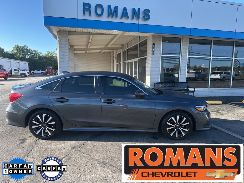 *Family owned since 1967* CARFAX One-Owner. 2022 Honda Civic EX Gray EX 4D Sedan FWD CVT 1.5L I-4 DI DOHC Turbocharged Gray w/Cloth Seat Trim, Air Conditioning, Automatic temperature control, Protection Package I, Radio data system, Radio: 180-Watt AM/FM Audio System, Splash Guard Set, Trunk Tray, Wheel Lock Nut (AS), 4-Wheel Disc Brakes, 8 Speakers, ABS brakes, Adaptive Cruise Control: Adaptive Cruise Control (ACC) with Low-Speed Follow, Alloy wheels, AM/FM radio, Apple CarPlay/Android Auto, Auto High-beam Headlights, Blind Spot Information (BSI) System warning, Brake assist, Bumpers: body-color, Cloth Seat Trim, Delay-off headlights, Driver door bin, Driver vanity mirror, Dual front impact airbags, Dual front side impact airbags, Electronic Stability Control, Emergency communication system: HondaLink, Exterior Parking Camera Rear, Forward collision: Collision Mitigation Braking System (CMBS) + FCW mitigation, Four wheel independent suspension, Front anti-roll bar, Front Bucket Seats, Front Center Armrest, Front dual zone A/C, Front reading lights, Fully automatic headlights, Heated door mirrors, Heated Front Bucket Seats, Heated front seats, Illuminated entry, Knee airbag, Leather Shift Knob, Leather steering wheel, Low tire pressure warning, Occupant sensing airbag, Outside temperature display, Overhead airbag, Overhead console, Panic alarm, Passenger door bin, Passenger vanity mirror, Power door mirrors, Power moonroof, Power steering, Power windows, Rear anti-roll bar, Rear seat center armrest, Rear side impact airbag, Rear window defroster, Remote keyless entry, Security system, Speed control, Speed-sensing steering, Split folding rear seat, Steering wheel mounted audio controls, Tachometer, Telescoping steering wheel, Tilt steering wheel, Traction control, Trip computer, Variably intermittent wipers, Wheels: 17 Alloy w/Gloss Black Inserts, Recently Serviced., Gray w/Cloth Seat Trim, Air Conditioning, Automatic temperature control, Protection Package I, Radio data system, Radio: 180-Watt AM/FM Audio System, Splash Guard Set, Trunk Tray, Wheel Lock Nut (AS).