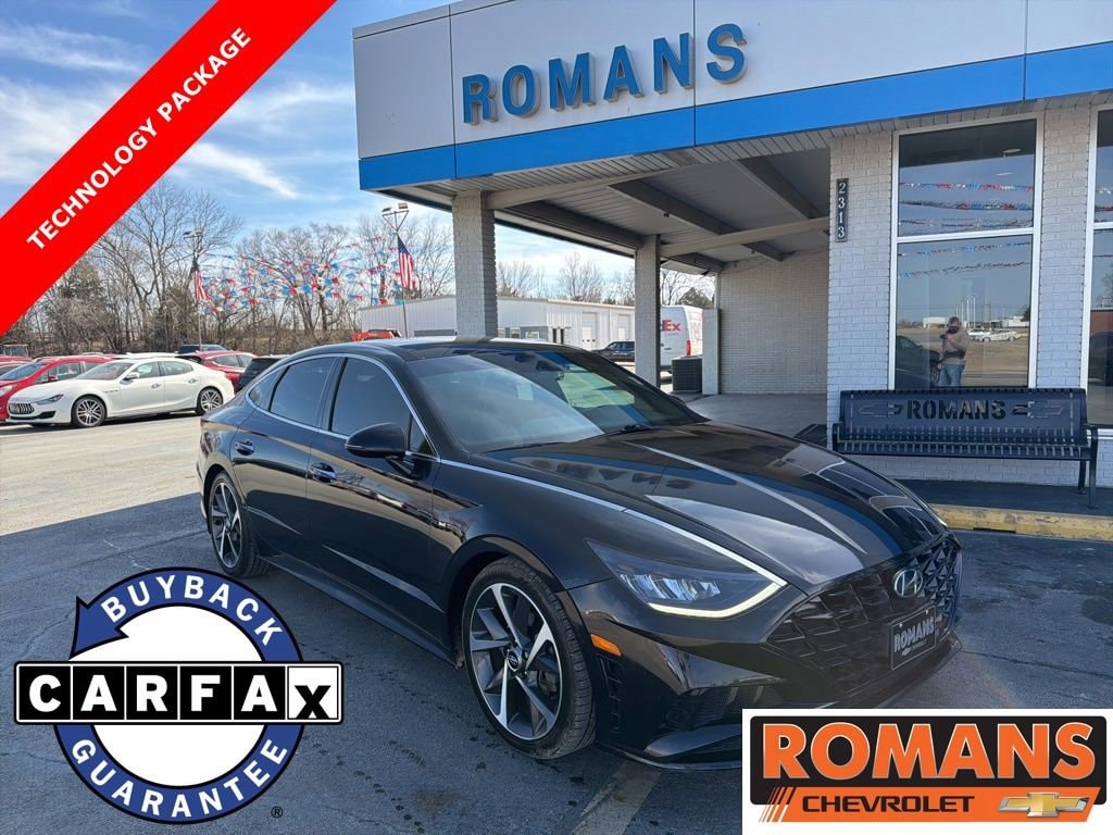 *Family owned since 1967* 2021 Hyundai Sonata SEL Plus Phantom Black SEL Plus 4D Sedan FWD 8-Speed Automatic with Overdrive I4 Black Premium Synthetic, Bose Premium Audio, Cargo Hook, Cargo Net, Cargo Package, Highway Drive Assist (HDA), LED Interior Lights, Option Group 05, Panoramic Sunroof, Radio: AM/FM/HD/SiriusXM Display Audio w/Nav, Reversible Cargo Tray, Tech Package, 4-Wheel Disc Brakes, 6 Speakers, ABS brakes, Air Conditioning, Alloy wheels, AM/FM radio: SiriusXM, Apple CarPlay & Android Auto, Auto High-beam Headlights, Auto-dimming Rear-View mirror, Automatic temperature control, Brake assist, Bumpers: body-color, Carpeted Floor Mats, Delay-off headlights, Dinamica Suede/Leatherette Seating Surfaces, Driver door bin, Driver vanity mirror, Dual front impact airbags, Dual front side impact airbags, Electronic Stability Control, Emergency communication system: Blue Link Connected Car Service (3-year complimentary subscription), Exterior Parking Camera Rear, First Aid Kit, Four wheel independent suspension, Front anti-roll bar, Front Bucket Seats, Front Center Armrest, Front dual zone A/C, Front reading lights, Fully automatic headlights, Garage door transmitter: HomeLink, Heated door mirrors, Heated Front Bucket Seats, Heated front seats, Illuminated entry, Knee airbag, Low tire pressure warning, Mud Guards, Occupant sensing airbag, Outside temperature display, Overhead airbag, Overhead console, Panic alarm, Passenger door bin, Passenger vanity mirror, Power door mirrors, Power driver seat, Power steering, Power windows, Radio data system, Radio: AM/FM/MP3/HD/SiriusXM Display Audio, Rear anti-roll bar, Rear Bumper Applique, Rear seat center armrest, Rear side impact airbag, Rear window defroster, Remote keyless entry, Security system, Speed control, Speed-sensing steering, Speed-Sensitive Wipers, Split folding rear seat, Steering wheel mounted audio controls, Tachometer, Telescoping steering wheel, Tilt steering wheel, Traction control, Trip computer, Turn signal indicator mirrors, Variably intermittent wipers, Wheel Locks, Wheels: 19 x 8.0J Aluminum Alloy, Wireless Device Charging, Recently Serviced., Black Premium Synthetic, Bose Premium Audio, Cargo Hook, Cargo Net, Cargo Package, Highway Drive Assist (HDA), LED Interior Lights, Option Group 05, Panoramic Sunroof, Radio: AM/FM/HD/SiriusXM Display Audio w/Nav, Reversible Cargo Tray, Tech Package.