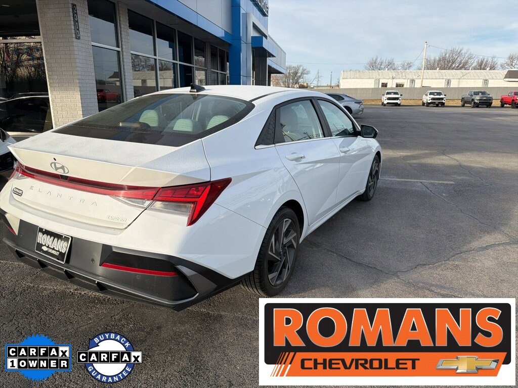 *Family owned since 1967* Clean CARFAX. CARFAX One-Owner. 2024 Hyundai Elantra Limited Serenity White Limited 4D Sedan FWD CVT I4 8 Speakers, Air Conditioning, AM/FM radio: SiriusXM, Automatic temperature control, Navigation System, Option Group 01, Radio: AM/FM/HD/SiriusXM Display Audio, 17 x 7.0J Alloy Wheels, 4-Wheel Disc Brakes, ABS brakes, Alloy wheels, Apple CarPlay & Android Auto, Auto High-beam Headlights, Auto-dimming Rear-View mirror, Brake assist, Bumpers: body-color, Delay-off headlights, Driver door bin, Driver vanity mirror, Dual front impact airbags, Dual front side impact airbags, Electronic Stability Control, Emergency communication system: Bluelink+, Front anti-roll bar, Front Bucket Seats, Front Center Armrest, Front dual zone A/C, Front reading lights, Front wheel independent suspension, Fully automatic headlights, Heated door mirrors, Heated Front Bucket Seats, Heated front seats, Illuminated entry, Leatherette Seats, Low tire pressure warning, Occupant sensing airbag, Outside temperature display, Overhead airbag, Overhead console, Panic alarm, Passenger door bin, Passenger vanity mirror, Power door mirrors, Power driver seat, Power moonroof, Power steering, Power windows, Rear seat center armrest, Rear side impact airbag, Rear window defroster, Remote keyless entry, Security system, Speed control, Speed-sensing steering, Split folding rear seat, Steering wheel mounted audio controls, Tachometer, Telescoping steering wheel, Tilt steering wheel, Traction control, Trip computer, Turn signal indicator mirrors, Variably intermittent wipers, Recently Serviced., 8 Speakers, Air Conditioning, AM/FM radio: SiriusXM, Automatic temperature control, Navigation System, Option Group 01, Radio: AM/FM/HD/SiriusXM Display Audio.