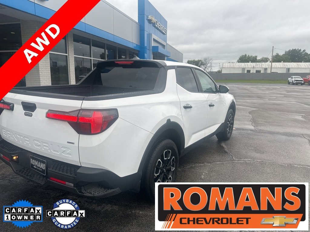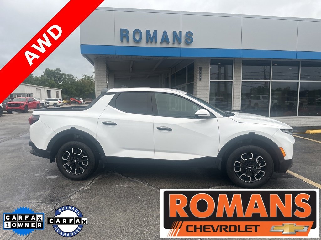 *Family owned since 1967* Clean CARFAX. 2024 Hyundai Santa Cruz SEL AWD Atlas White SEL AWD 4D Crew Cab AWD 8-Speed Automatic with SHIFTRONIC 2.5L I4 10.25 Digital Instrument Cluster, 115V AC Power Inverter in Bed, 15W Wireless Phone, Conventional Power Sunroof, Dual C-Channel Utility Tracks on Bed Side, Integrated Tonneau Cover, LED Bed Lighting, LED Front & Rear Interior Lights, Option Group 01, Option Group 02, Power steering, Power windows, Radio: AM/FM/HD Audio System (P2), Rear Sliding Glass Window w/Defroster, Remote keyless entry, Roof Side Rails, Steering wheel mounted audio controls, 18 x 7.5J Alloy Wheels, 4-Wheel Disc Brakes, 4.081 Axle Ratio, 6 Speakers, ABS brakes, Air Conditioning, Alloy wheels, AM/FM radio: SiriusXM, Apple CarPlay & Android Auto, Auto High-beam Headlights, Auto-leveling suspension, Automatic temperature control, Bed Cargo Net, Brake assist, Bumpers: body-color, Delay-off headlights, Driver door bin, Driver vanity mirror, Dual front impact airbags, Dual front side impact airbags, Electronic Stability Control, Emergency communication system: Bluelink+, Exterior Parking Camera Rear, First Aid Kit, Fitted Liners, Four wheel independent suspension, Front anti-roll bar, Front Bucket Seats, Front Center Armrest, Front dual zone A/C, Front reading lights, Fully automatic headlights, Heated door mirrors, Heated Front Bucket Seats, Heated front seats, Illuminated entry, Low tire pressure warning, Mud Guards, Occupant sensing airbag, Outside temperature display, Overhead airbag, Overhead console, Panic alarm, Passenger door bin, Passenger vanity mirror, Power door mirrors, Power driver seat, Radio data system, Radio: AM/FM/HD Audio System, Rear anti-roll bar, Rear side impact airbag, Rear step bumper, Rear window defroster, Security system, Speed control, Speed-sensing steering, Split folding rear seat, Spoiler, Stain & Odor Resistant Cloth Seat Trim, Tachometer, Telescoping steering wheel, Tilt steering wheel, Traction control, Trip computer, Turn signal indicator mirrors, Variably intermittent wipers, Wheel Locks, Recently Serviced., 10.25 Digital Instrument Cluster, 115V AC Power Inverter in Bed, 15W Wireless Phone, Conventional Power Sunroof, Dual C-Channel Utility Tracks on Bed Side, Integrated Tonneau Cover, LED Bed Lighting, LED Front & Rear Interior Lights, Option Group 01, Option Group 02, Power steering, Power windows, Radio: AM/FM/HD Audio System (P2), Rear Sliding Glass Window w/Defroster, Remote keyless entry, Roof Side Rails, Steering wheel mounted audio controls.