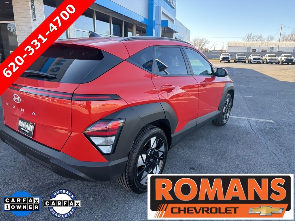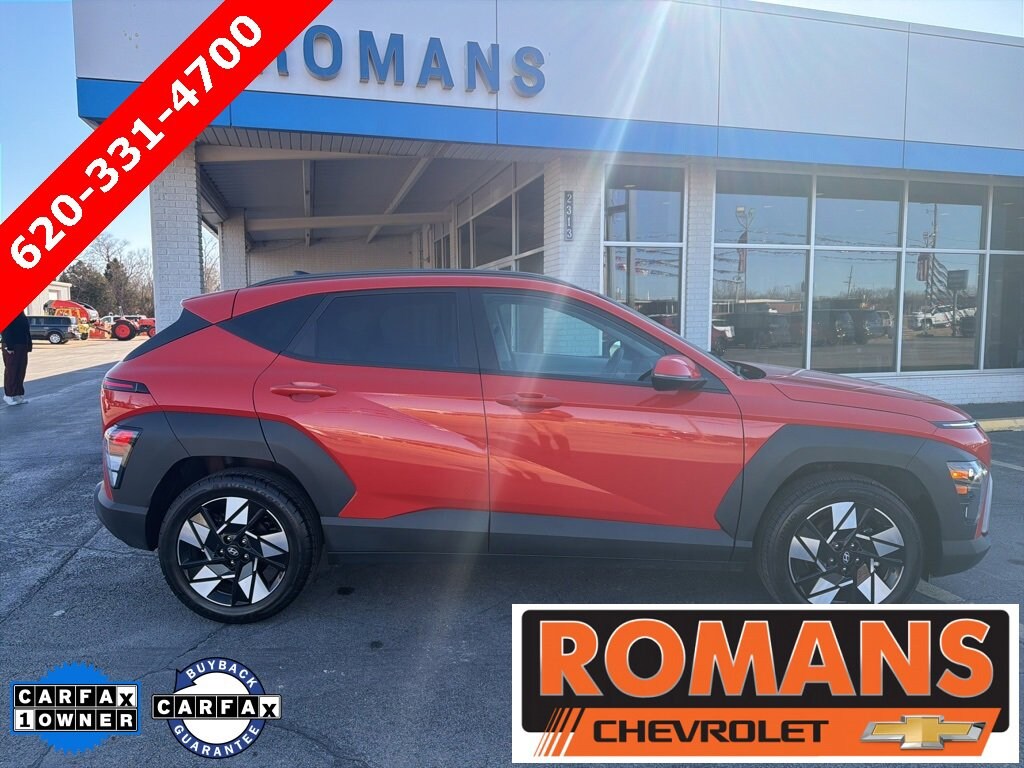 *Family owned since 1967* CARFAX One-Owner. 2025 Hyundai Kona SEL Soultronic Orange Pearl SEL 4D Sport Utility FWD CVT 2.0L I4 DOHC 16V 6 Speakers, Air Conditioning, AM/FM radio: SiriusXM, Automatic temperature control, Option Group 01, Radio: AM/FM/HD Radio/SiriusXM Audio System, 4-Wheel Disc Brakes, ABS brakes, Alloy wheels, Apple CarPlay & Android Auto, Auto High-beam Headlights, Brake assist, Bumpers: body-color, Cloth Seat Trim, Delay-off headlights, Driver door bin, Driver vanity mirror, Dual front impact airbags, Dual front side impact airbags, Electronic Stability Control, Emergency communication system: Bluelink+, Exterior Parking Camera Rear, Front anti-roll bar, Front Bucket Seats, Front Center Armrest, Front dual zone A/C, Front reading lights, Front wheel independent suspension, Fully automatic headlights, Heated door mirrors, Illuminated entry, Leather steering wheel, Low tire pressure warning, Occupant sensing airbag, Outside temperature display, Overhead airbag, Panic alarm, Passenger door bin, Passenger vanity mirror, Power door mirrors, Power driver seat, Power steering, Power windows, Rear seat center armrest, Rear window defroster, Rear window wiper, Remote keyless entry, Security system, Speed control, Speed-sensing steering, Split folding rear seat, Spoiler, Steering wheel mounted audio controls, Tachometer, Telescoping steering wheel, Tilt steering wheel, Traction control, Trip computer, Turn signal indicator mirrors, Variably intermittent wipers, Wheels: 18 x 7.0J Glossy Black Alloy, Recently Serviced., 6 Speakers, Air Conditioning, AM/FM radio: SiriusXM, Automatic temperature control, Option Group 01, Radio: AM/FM/HD Radio/SiriusXM Audio System.