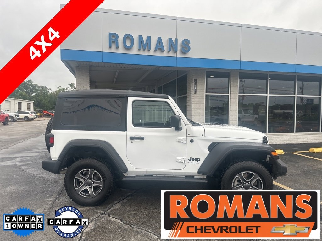 *Family owned since 1967* CARFAX One-Owner. 2023 Jeep Wrangler Sport S 4x4 Bright White Clearcoat Sport S 4x4 2D Sport Utility 4WD 8-Speed Automatic 3.6L V6 24V VVT Automatic Headlamps, Cold Weather Group, Convenience Group, Deep Tint Sunscreen Windows, Front 1-Touch Down Power Windows, Heated Front Seats, Heated Steering Wheel, Navigation System, Power Heated Mirrors, Premium Wrapped Steering Wheel, Quick Order Package 25S Sport S, Remote Keyless Entry, Remote Start System, Security Alarm, Speed Sensitive Power Locks, Sport S, Sun Visors w/Illuminated Vanity Mirrors, Universal Garage Door Opener, Wheels: 17 x 7.5 Tech Silver Aluminum, 3.45 Overall Top Gear Ratio, 4-Wheel Disc Brakes, 8 Speakers, ABS brakes, AM/FM radio, Apple CarPlay, Apple CarPlay/Android Auto, Auxiliary Battery, Brake assist, Cloth Low-Back Bucket Seats, Compass, Delay-off headlights, Driver door bin, Driver vanity mirror, Dual front impact airbags, Dual front side impact airbags, Electronic Stability Control, Emergency communication system: SiriusXM Guardian, Engine Oil Cooler, Front anti-roll bar, Front Bucket Seats, Front Center Armrest w/Storage, Front fog lights, Front reading lights, Google Android Auto, GPS Antenna Input, Integrated Center Stack Radio, Integrated roll-over protection, Integrated Voice Command w/Bluetooth, Low tire pressure warning, Mopar Black Fuel Filler Door, Mopar Black Tubular Side Steps, MOPAR Grab Handle Kit, MOPAR Grab Handles, MOPAR Windshield Tie Down, Non-Locking Fuel Cap w/o Discriminator, Normal Duty Suspension, Occupant sensing airbag, Outside temperature display, ParkView Rear Back-Up Camera, Passenger door bin, Passenger vanity mirror, Power steering, Radio data system, Radio: Uconnect 4 w/7 Display, Rear anti-roll bar, Rear reading lights, Speed control, Start-Stop Dual Battery System, Steering wheel mounted audio controls, Tachometer, Telescoping steering wheel, Tilt steering wheel, Traction control, Trip computer, USB Host Flip, Variably intermittent wipers, Wheels: 17 x 7.5 Black Steel Styled, Wheels: 17 x 7.5 Machined Granite Crystal, Recently Serviced., Automatic Headlamps, Cold Weather Group, Convenience Group, Deep Tint Sunscreen Windows, Front 1-Touch Down Power Windows, Heated Front Seats, Heated Steering Wheel, Navigation System, Power Heated Mirrors, Premium Wrapped Steering Wheel, Quick Order Package 25S Sport S, Remote Keyless Entry, Remote Start System, Security Alarm, Speed Sensitive Power Locks, Sport S, Sun Visors w/Illuminated Vanity Mirrors, Universal Garage Door Opener, Wheels: 17 x 7.5 Tech Silver Aluminum.