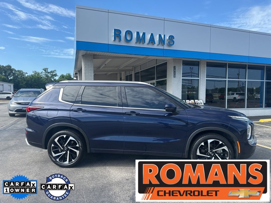*Family owned since 1967* CARFAX One-Owner. 2022 Mitsubishi Outlander SEL AWD Cosmic Blue Metallic SEL AWD 4D Sport Utility 4WD CVT 2.5L 4-Cylinder DOHC 4WD, 10.8 Head-Up Display (HUD), All Weather Floormats, All Weather Package, Automatic temperature control, Cargo Liner, Center Console Illumination (Blue), Center Console Tray Illumination, Console Lighting Package, Heated Steering Wheel, Navigation system: Powered by TOMTOM, Power Panoramic Sunroof, Radio: AM/FM 9.0 Navigation w/Smartphone Link, Rear Door Pull-Up Sunshade, SEL Touring Package, Semi-Aniline Leather Seat Trim, Synthetic Leather Door Insert w/Quilting, Touring Package, Tow Hitch, Towing Package, 3rd row seats: split-bench, 4-Wheel Disc Brakes, ABS brakes, Air Conditioning, Alloy wheels, AM/FM radio: SiriusXM, Android Auto & Apple CarPlay, Auto High-beam Headlights, Auto-dimming Rear-View mirror, Brake assist, Bumpers: body-color, Driver door bin, Driver vanity mirror, Dual front impact airbags, Dual front side impact airbags, Electronic Stability Control, Emergency communication system: Mitsubishi Connect w/ 24-month trial, Four wheel independent suspension, Front anti-roll bar, Front Bucket Seats, Front Center Armrest w/Storage, Front dual zone A/C, Front fog lights, Front reading lights, Fully automatic headlights, Headlight cleaning, Heated door mirrors, Heated Front Bucket Seats, Heated front seats, Illuminated entry, Knee airbag, Leather Shift Knob, Leather steering wheel, Low tire pressure warning, Memory seat, Occupant sensing airbag, Outside temperature display, Overhead airbag, Overhead console, Panic alarm, Passenger door bin, Passenger vanity mirror, Power door mirrors, Power driver seat, Power Liftgate, Power passenger seat, Power steering, Power windows, Radio data system, Rain sensing wipers, Rear air conditioning, Rear anti-roll bar, Rear seat center armrest, Rear side impact airbag, Rear window defroster, Rear window wiper, Reclining 3rd row seat, Remote keyless entry, Roof rack: rails only, Security system, Speed control, Speed-Sensitive Wipers, Split folding rear seat, Spoiler, Steering wheel mounted audio controls, Tachometer, Telescoping steering wheel, Tilt steering wheel, Traction control, Trip computer, Turn signal indicator mirrors, Variably intermittent wipers, Wheels: 20 x 8J Two-Tone Alloy, Recently Serviced., 4WD, 10.8 Head-Up Display (HUD), All Weather Floormats, All Weather Package, Automatic temperature control, Cargo Liner, Center Console Illumination (Blue), Center Console Tray Illumination, Console Lighting Package, Heated Steering Wheel, Navigation system: Powered by TOMTOM, Power Panoramic Sunroof, Radio: AM/FM 9.0 Navigation w/Smartphone Link, Rear Door Pull-Up Sunshade, SEL Touring Package, Semi-Aniline Leather Seat Trim, Synthetic Leather Door Insert w/Quilting, Touring Package, Tow Hitch, Towing Package.Odometer is 3011 miles below market average!24/30 City/Highway MPGPriced below KBB Fair Purchase Price!FOR MORE INFORMATION PLEASE E-MAIL US AT leads@romanschevroletbuick.com OR CALL US AT ***620-331-4700***