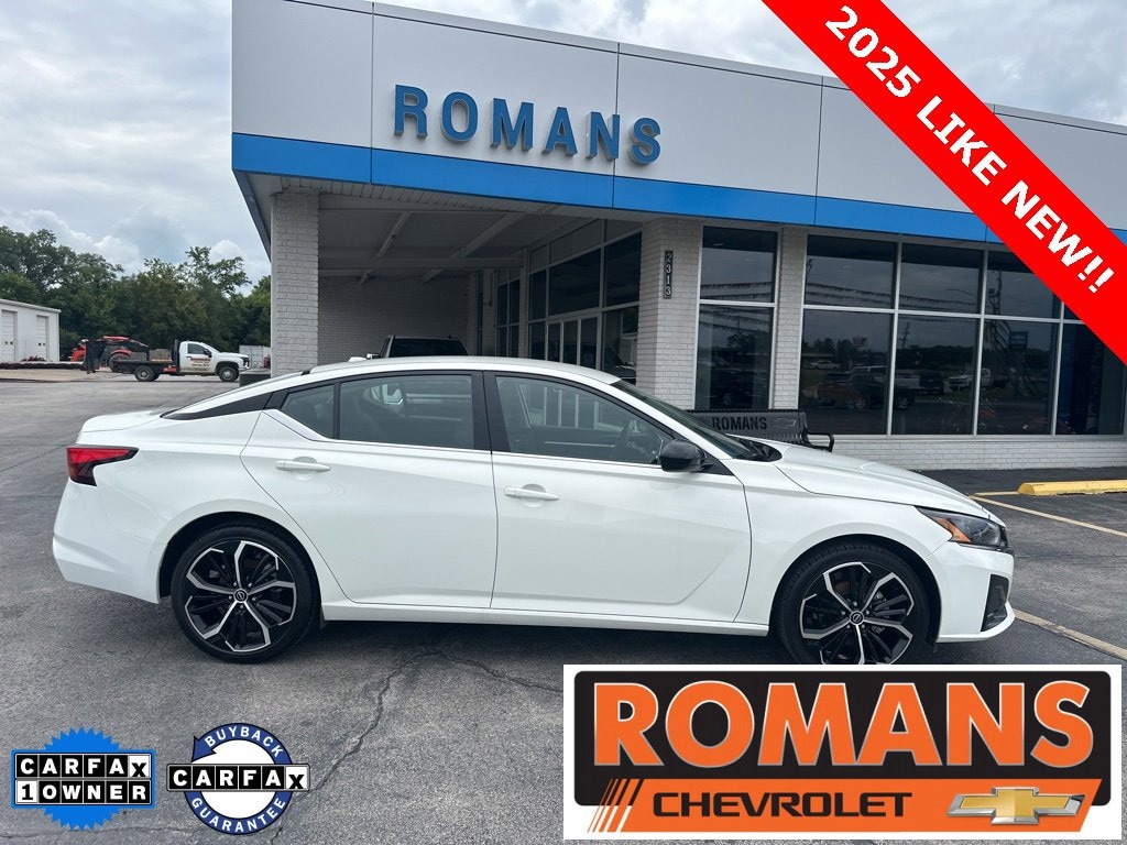 *Family owned since 1967* CARFAX One-Owner. 2025 Nissan Altima 2.5 SR Glacier White 2.5 SR 4D Sedan FWD CVT with Xtronic 2.5L 4-Cylinder DOHC 16V CVT with Xtronic, 2-Way Driver Power Lumbar Support, 4-Way Power Passenger Seat, Dual Zone Automatic HVAC, Heated Front Seats, Leather-Appointed Seat Trim, NissanConnect, Premium Sport Interior Finishers, Remote Engine Start w/Intelligent Climate Control, Single Panel Moonroof, SR Premium Package, 4-Wheel Disc Brakes, 6 Speakers, ABS brakes, Air Conditioning, Alloy wheels, AM/FM radio: SiriusXM, Auto High-beam Headlights, Blind Spot Warning, Brake assist, Bumpers: body-color, Delay-off headlights, Driver door bin, Driver vanity mirror, Dual front impact airbags, Dual front side impact airbags, Electronic Stability Control, Four wheel independent suspension, Front anti-roll bar, Front Bucket Seats, Front Center Armrest, Front reading lights, Fully automatic headlights, Illuminated entry, Knee airbag, Leather Shift Knob, Low tire pressure warning, NissanConnect featuring Apple CarPlay and Android Auto, Occupant sensing airbag, Outside temperature display, Overhead airbag, Overhead console, Panic alarm, Passenger door bin, Passenger vanity mirror, Power door mirrors, Power driver seat, Power steering, Power windows, Radio data system, Radio: AM/FM Audio System, Rear anti-roll bar, Rear Parking Sensors, Rear reading lights, Rear seat center armrest, Rear side impact airbag, Rear window defroster, Remote keyless entry, Security system, Speed control, Speed-sensing steering, Speed-Sensitive Wipers, Split folding rear seat, Sport Seat Trim, Steering wheel mounted audio controls, Tachometer, Telescoping steering wheel, Tilt steering wheel, Traction control, Trip computer, Unique Sport Seats, Variably intermittent wipers, Wheels: 19 Sport Machined Alloy, Recently Serviced., CVT with Xtronic, 2-Way Driver Power Lumbar Support, 4-Way Power Passenger Seat, Dual Zone Automatic HVAC, Heated Front Seats, Leather-Appointed Seat Trim, NissanConnect, Premium Sport Interior Finishers, Remote Engine Start w/Intelligent Climate Control, Single Panel Moonroof, SR Premium Package.