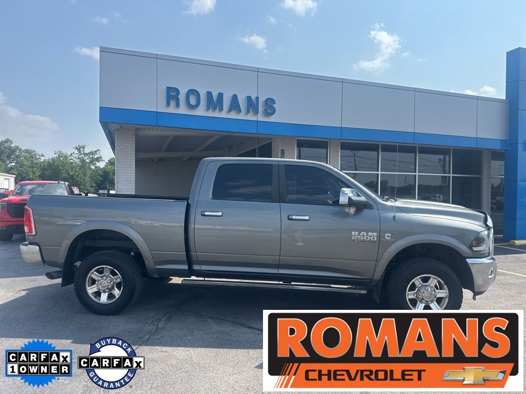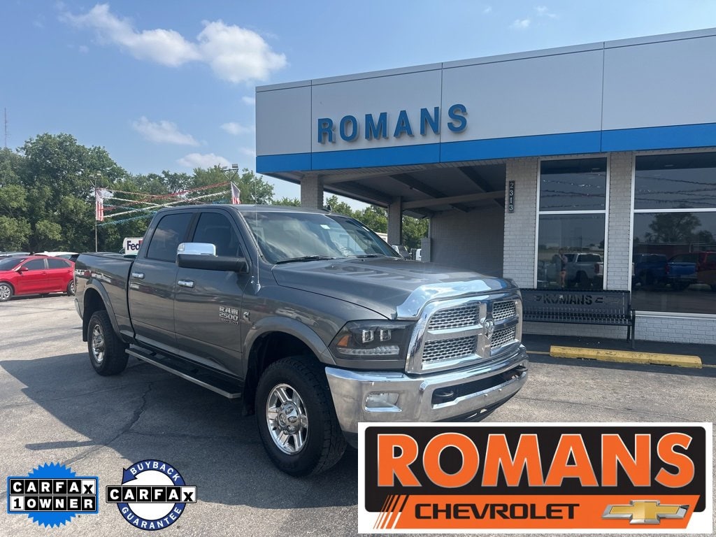*Family owned since 1967* 2013 Ram 2500 Laramie 4x4 Mineral Gray Metallic Clearcoat Laramie 4x4 4D Crew Cab 4WD 6-Speed Automatic Cummins 6.7L I6 Turbodiesel NEW BRAKES, NEW TIRES, 3.42 Rear Axle Ratio, Cold Weather Group, Engine Block Heater, GPS Navigation, Protection Group, Quick Order Package 2FH Laramie, Winter Front Grille Cover, 10 Speakers, 115V Auxiliary Power Outlet, 17 x 8 Aluminum Wheels, 180 Amp Alternator, 4-Wheel Disc Brakes, ABS brakes, Air Conditioning, Alloy wheels, AM/FM radio: SiriusXM, Anti-Spin Differential Rear Axle, Audio memory, Auto-dimming door mirrors, Auto-dimming Rear-View mirror, Automatic temperature control, Brake assist, Bumpers: chrome, Center Hub, Chrome Exterior Mirrors, Chrome Power Trailer Tow Mirrors, Compass, Delay-off headlights, Driver door bin, Driver vanity mirror, Dual front impact airbags, Dual front side impact airbags, Electronic Stability Control, Emergency communication system, Exterior Mirrors Courtesy Lamps, Exterior Mirrors w/Heating Element, Exterior Mirrors w/Memory, Exterior Mirrors w/Supplemental Signals, Exterior Parking Camera Rear, Folding Flat Load Floor Storage, Front anti-roll bar, Front Center Armrest w/Storage, Front dual zone A/C, Front fog lights, Front reading lights, Fully automatic headlights, Garage door transmitter, Heated door mirrors, Heated Front Seats, Heated front seats, Heated steering wheel, High Back Seats, Illuminated entry, Keyless Enter-N-Go, Leather steering wheel, Leather Trim 40/20/40 Bench Seat, Locking Tailgate, Low tire pressure warning, Memory seat, Occupant sensing airbag, Outside temperature display, Overhead airbag, Overhead console, Panic alarm, ParkSense Rear Park Assist System, Passenger door bin, Passenger vanity mirror, Power 10-Way Memory Driver & 6-Way Passenger Seats, Power Adjustable Pedals w/Memory, Power door mirrors, Power driver seat, Power Lumbar Adjust, Power passenger seat, Power steering, Power windows, Radio data system, Radio: Uconnect 8.4A AM/FM/BT/Access, Radio: Uconnect 8.4AN AM/FM/BT/Access/NAV, Rear 60/40 Split Folding Seat, Rear seat center armrest, Rear step bumper, Remote keyless entry, Remote Proximity Keyless Entry, Remote Start System, Security system, SIRIUSXM Traffic, Speed control, Split folding rear seat, Steering wheel mounted audio controls, Tachometer, Tilt steering wheel, Traction control, Trip computer, Turn signal indicator mirrors, Variably intermittent wipers, Vendor Painted Cargo Box Tracking, Ventilated Front Seats, Ventilated front seats, Voltmeter, Recently Serviced., 3.42 Rear Axle Ratio, Cold Weather Group, Engine Block Heater, GPS Navigation, Protection Group, Quick Order Package 2FH Laramie, Winter Front Grille Cover.Reviews:* If you need to pull a class-leading 30,000 pounds or just want the knowledge that your truck can the Ram Heavy Duty has the muscle to do so. Meanwhile, its comfortable interior can coddle calloused hands and its sophisticated technology can keep you connected. Unlike its rivals, Ram HD trucks can be had with a manual transmission. Source: KBB.com* High-quality cabin; massive torque with diesel/automatic powertrain; roomy rear-seat room (Mega Cab); quiet highway ride. Source: EdmundsFOR MORE INFORMATION PLEASE E-MAIL US AT leads@romanschevroletbuick.com OR CALL US AT ***620-331-4700***