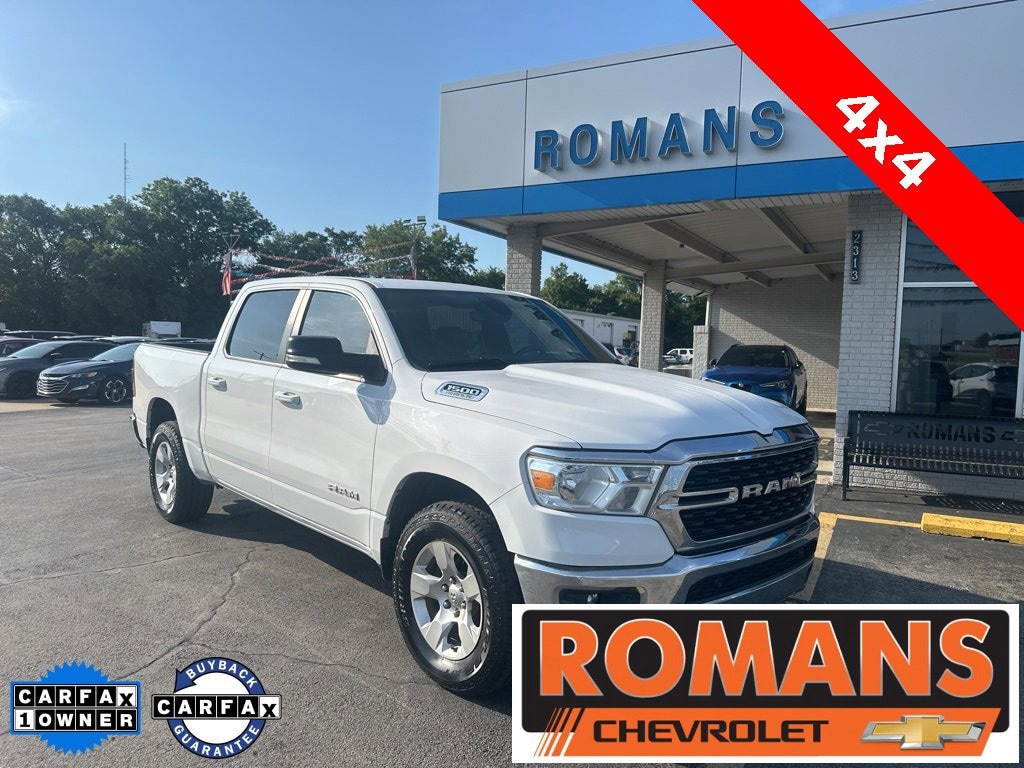 *Family owned since 1967* Clean CARFAX. CARFAX One-Owner. 2022 Ram 1500 Big Horn/Lone Star 4X4 Bright White Clearcoat Big Horn/Lone Star 4X4 4D Crew Cab 4WD 8-Speed Automatic HEMI 5.7L V8 Multi Displacement VVT Recently Serviced., 115V Auxiliary Power Outlet, 115V Auxiliary Rear Power Outlet, 2nd Row In Floor Storage Bins, 400W Inverter, 4G LTE Wi-Fi Hot Spot, 8.4 Touchscreen Display, Air Conditioning ATC w/Dual Zone Control, AM/FM radio, Apple CarPlay, Auto-Dimming Exterior Driver Mirror, Auto-Dimming Rear-View Mirror, Big Horn Badge, Big Horn Level B Equipment Group (DISC), Black Premium Power Mirrors (GUL), Bluetooth Handsfree Phone & Audio, Class IV Receiver Hitch, Cluster 7.0 TFT Color Display, Connectivity - US/Canada, Exterior Mirrors Courtesy Lamps, Exterior Mirrors w/Supplemental Signals, Foam Bottle Insert (Door Trim Panel), For More Info, Call 800-643-2112, Glove Box Lamp, Google Android Auto, GPS Antenna Input, Heated Front Seats, Heated Steering Wheel, Integrated Center Stack Radio, Media Hub w/2 Charge Only USBs, ParkSense Front/Rear Park Assist w/Stop, Power 2-Way Driver Lumbar Adjust, Power 8-Way Driver Seat, Power Adjustable Pedals, Quick Order Package 25Z Big Horn, Radio data system, Radio: Uconnect 3 w/5 Display, Radio: Uconnect 5 W w/8.4 Display, Rear Dome w/On/Off Switch Lamp, Rear Power Sliding Window, Rear Underseat Compartment Storage, Rear Window Defroster, Remote Start System, Security Alarm, SiriusXM Radio Service, SiriusXM Satellite Radio, Sun Visors w/Illuminated Vanity Mirrors, Trailer Brake Control, Trailer Light Check, Trailer Reverse Steering Control, Trailer Tire Pressure Monitoring System, Trailer Tow Group, Universal Garage Door Opener, USB Host Flip.
