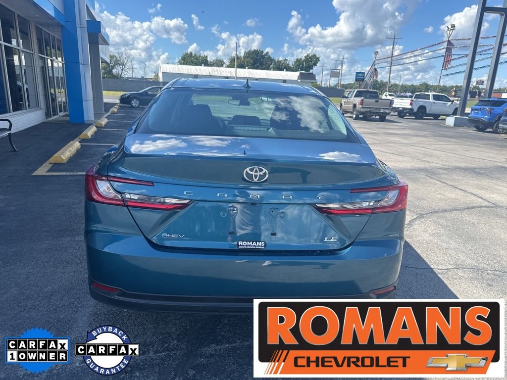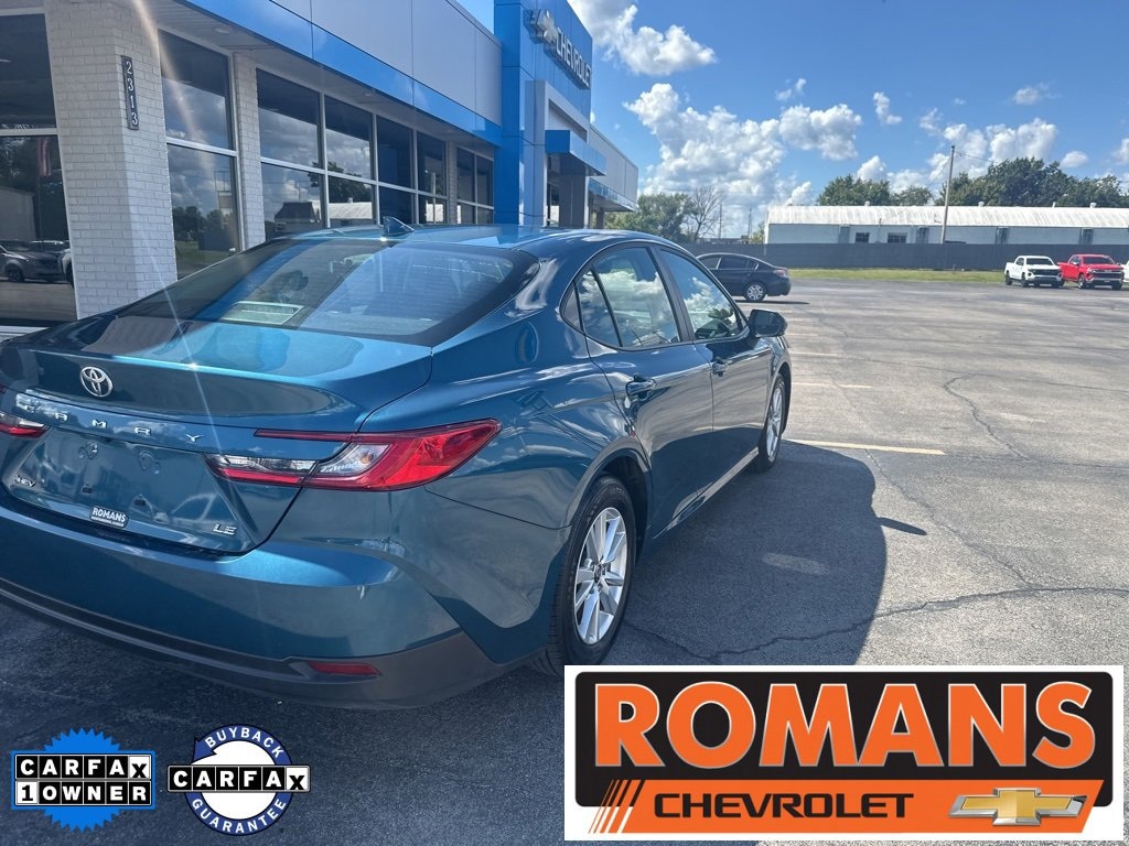 *Family owned since 1967* Clean CARFAX. CARFAX One-Owner. 2025 Toyota Camry LE Ocean Gem LE 4D Sedan FWD eCVT 2.5L 4-Cylinder 16V DOHC 2.5L 4-Cylinder 16V DOHC, Black w/Fabric Seat Trim, 8-Way Power-Adjustable Front Driver's Seat, Auto-Dimming Rearview Mirror w/HomeLink, Convenience Package, Driver-Side Seatback Pocket, Radio: Toyota Audio Multimedia w/8 Touchscreen, Smart Key System, 4-Wheel Disc Brakes, 6 Speakers, ABS brakes, Air Conditioning, Alloy wheels, AM/FM radio: SiriusXM, Apple CarPlay/Android Auto, Auto High-beam Headlights, Automatic temperature control, Brake assist, Bumpers: body-color, Delay-off headlights, Driver door bin, Driver vanity mirror, Dual front impact airbags, Dual front side impact airbags, Electronic Stability Control, Emergency communication system: Safety Connect (up to 10-year trial subscription), Exterior Parking Camera Rear, Fabric Seat Trim, Four wheel independent suspension, Front anti-roll bar, Front Bucket Seats, Front Center Armrest, Front dual zone A/C, Front reading lights, Fully automatic headlights, Heated door mirrors, Illuminated entry, Knee airbag, Low tire pressure warning, Occupant sensing airbag, Outside temperature display, Overhead airbag, Overhead console, Panic alarm, Passenger door bin, Passenger vanity mirror, Power door mirrors, Power steering, Power windows, Radio data system, Rear anti-roll bar, Rear seat center armrest, Rear side impact airbag, Rear window defroster, Remote keyless entry, Security system, Speed control, Speed-sensing steering, Split folding rear seat, Steering wheel mounted audio controls, Telescoping steering wheel, Tilt steering wheel, Traction control, Trip computer, Turn signal indicator mirrors, Variably intermittent wipers, Wheels: 16 Silver-Finished Alloy, Recently Serviced., 2.5L 4-Cylinder 16V DOHC, Black w/Fabric Seat Trim, 8-Way Power-Adjustable Front Driver's Seat, Auto-Dimming Rearview Mirror w/HomeLink, Convenience Package, Driver-Side Seatback Pocket, Radio: Toyota Audio Multimedia w/8 Touchscreen, Smart Key System.